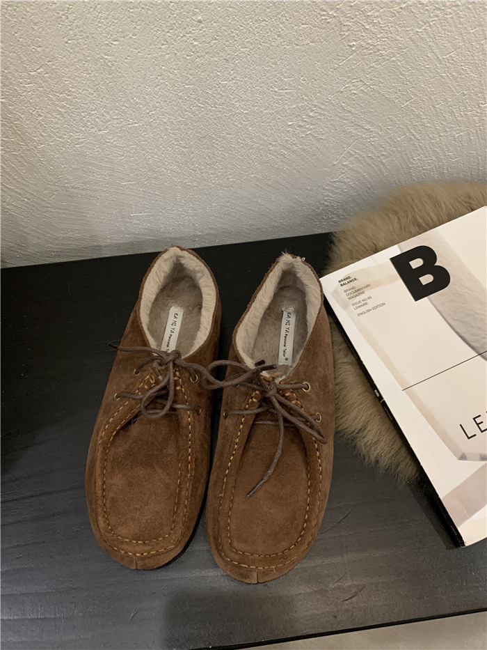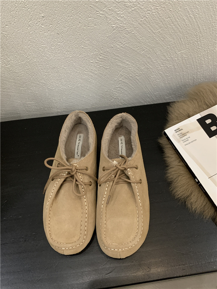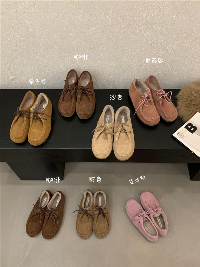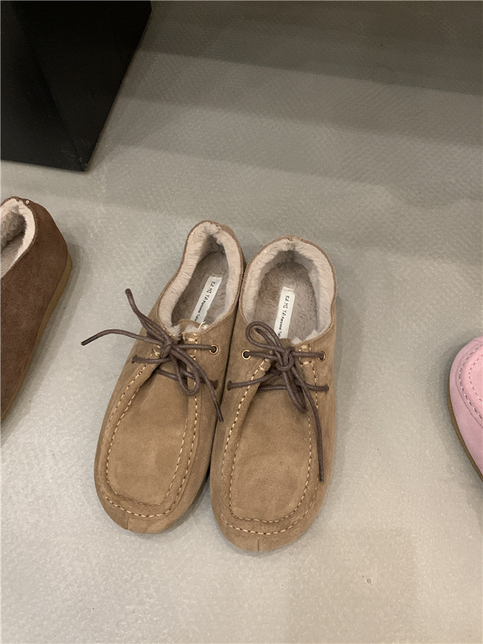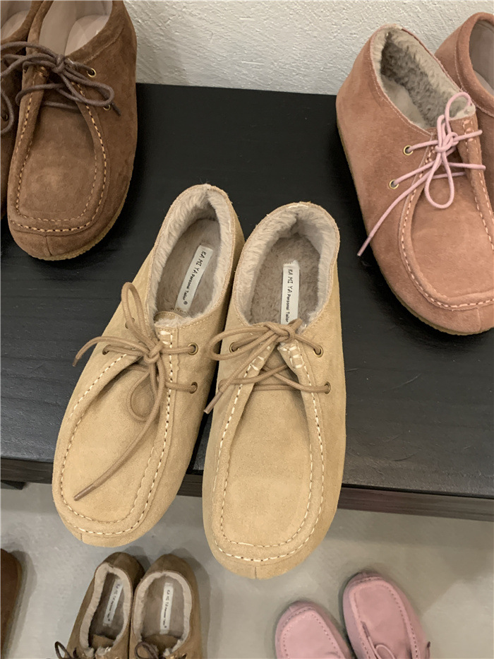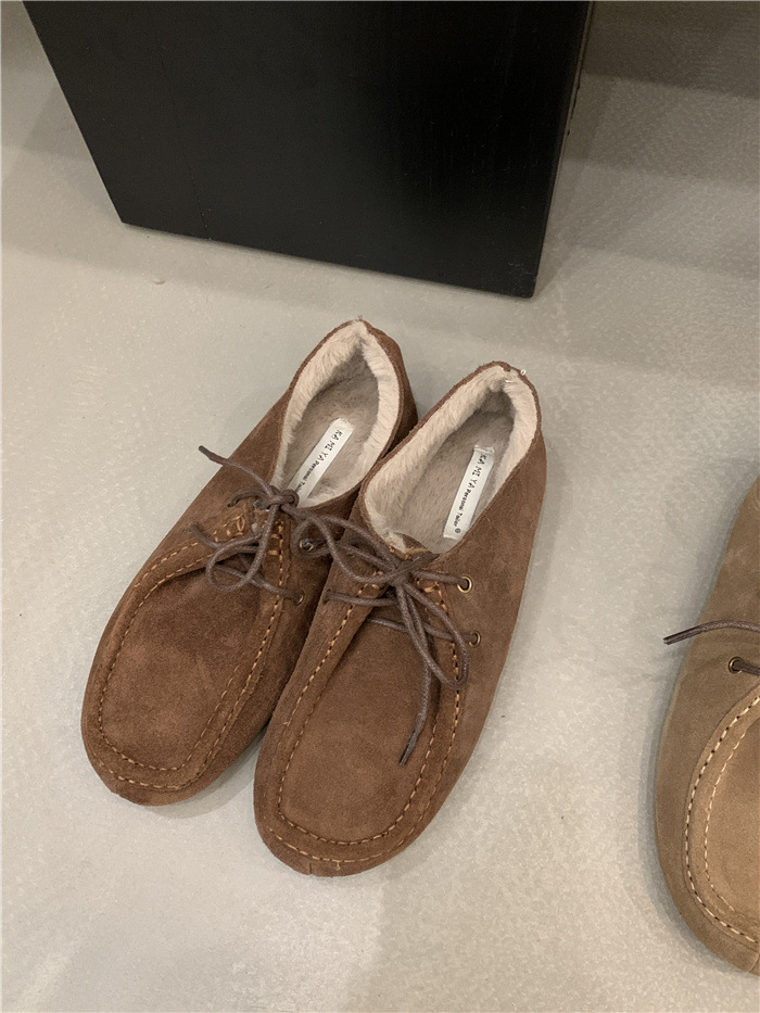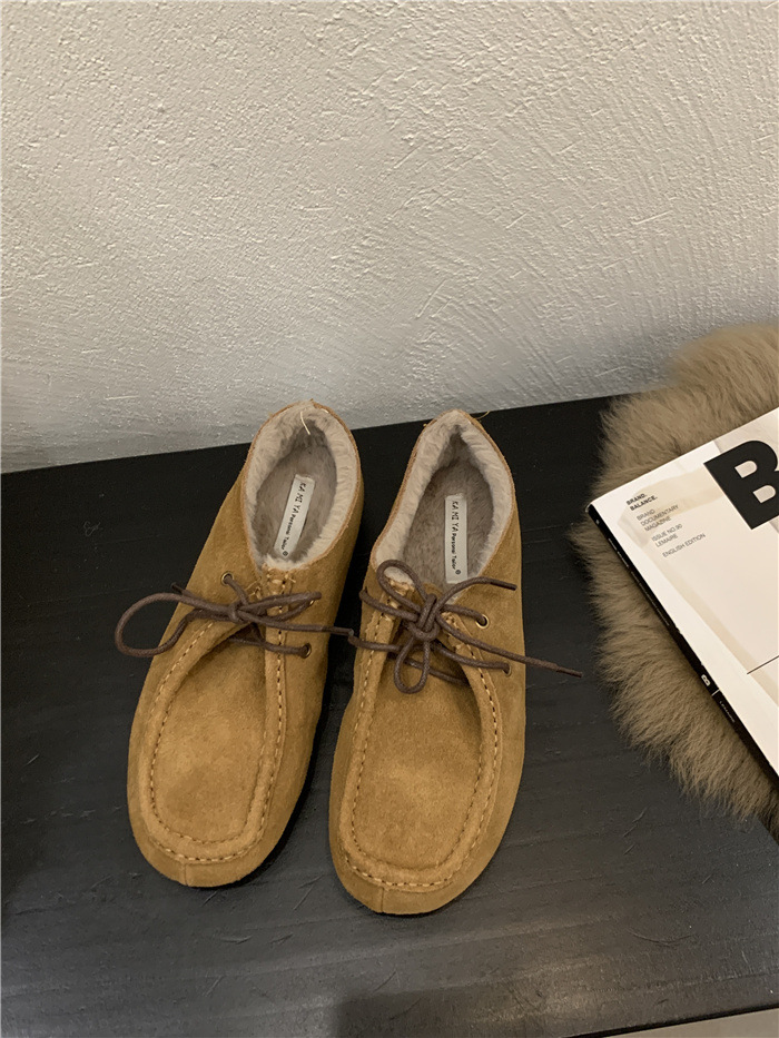 캥거루 가죽 레트로 로퍼 슬립온 여성용 2025 가을 겨울 보온 플러스 벨벳 신발 면화 신발스토어 가기