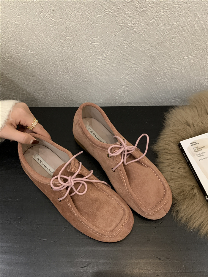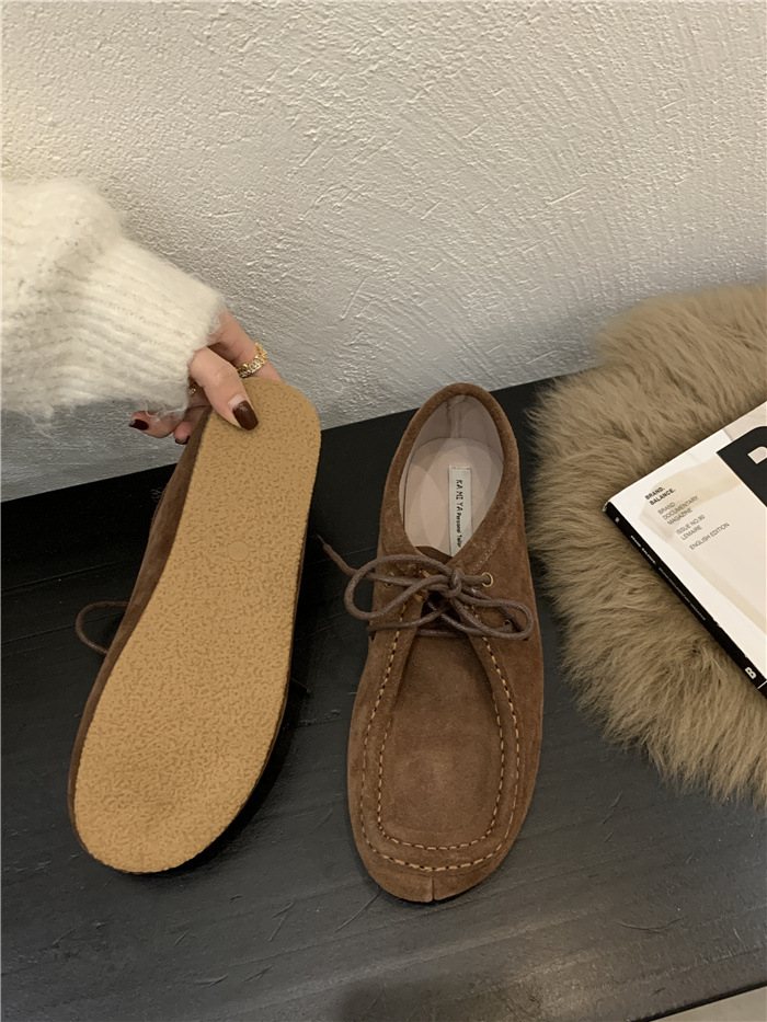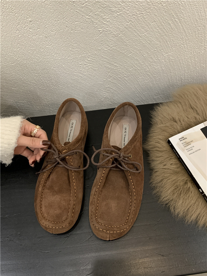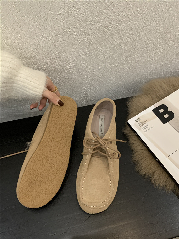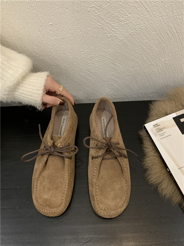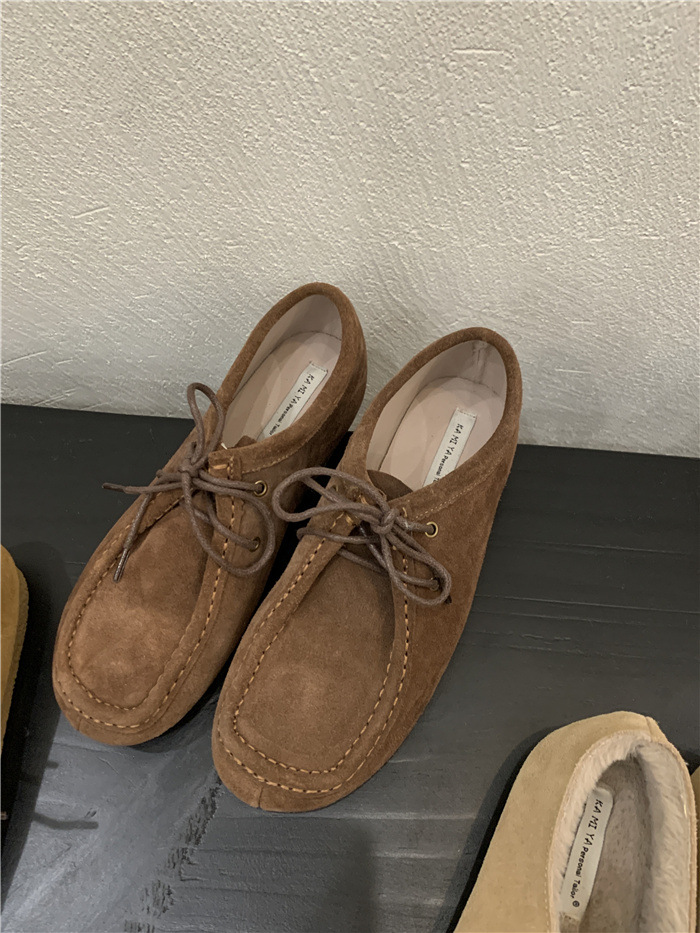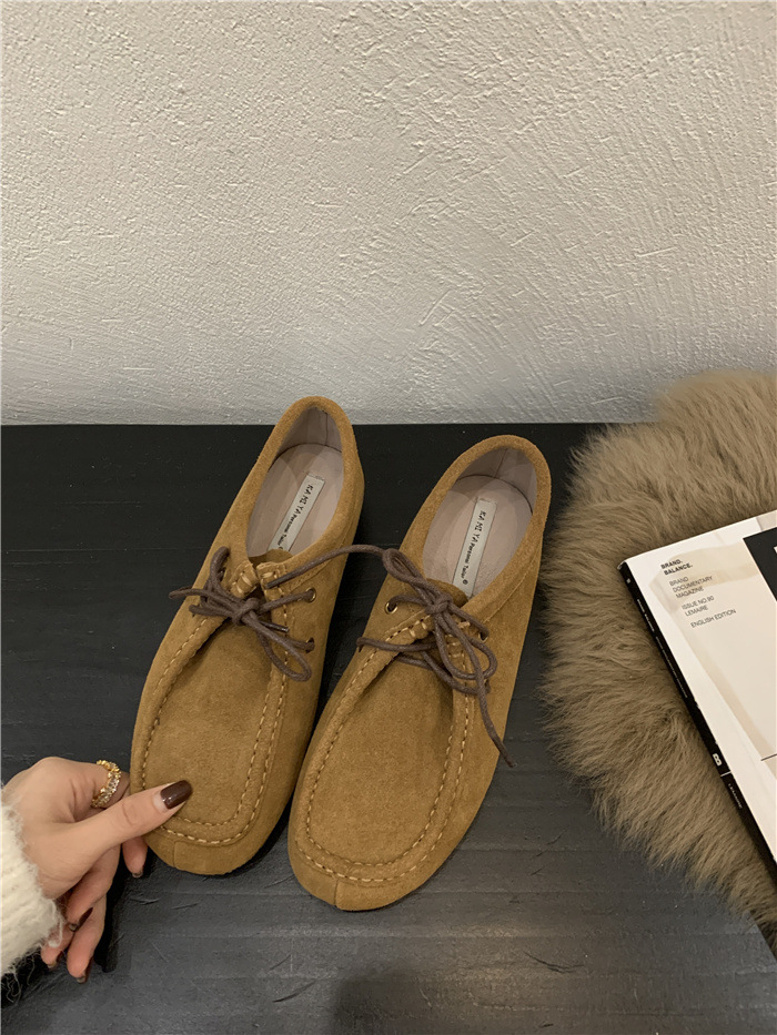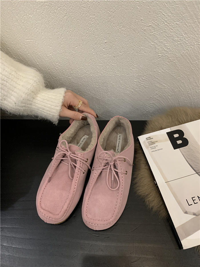 캥거루 가죽 레트로 로퍼 슬립온 여성용 2025 가을 겨울 보온 플러스 벨벳 신발 면화 신발스토어 가기