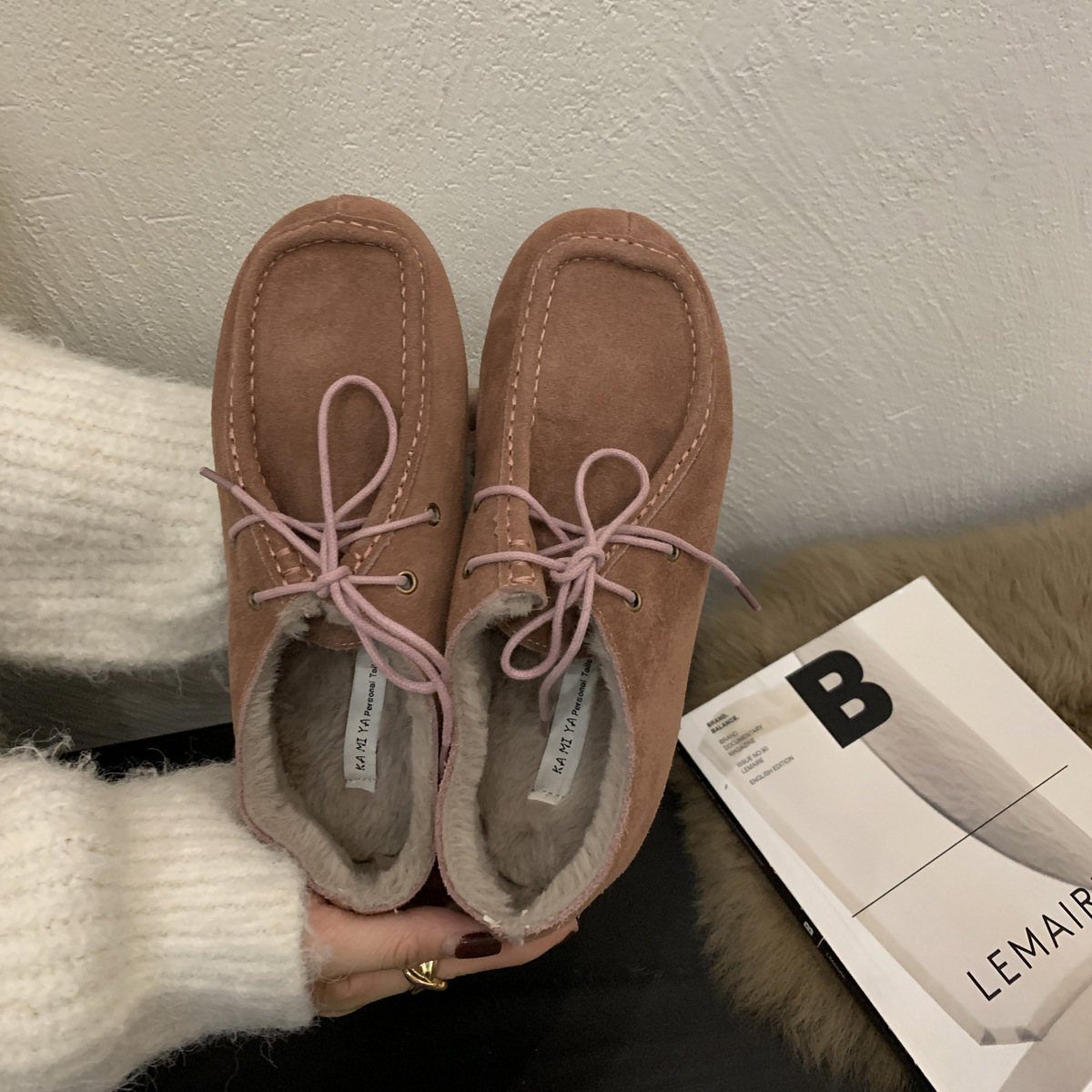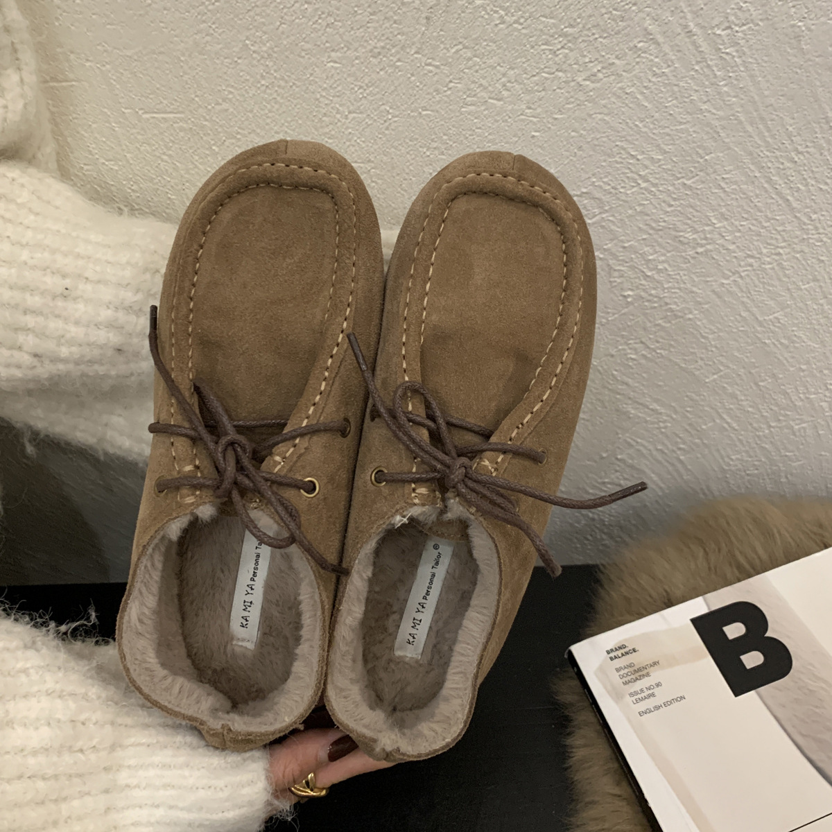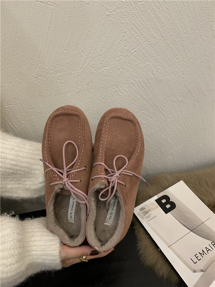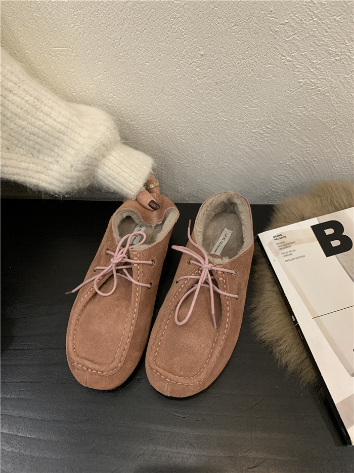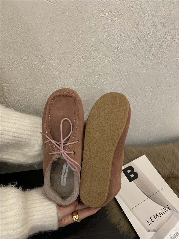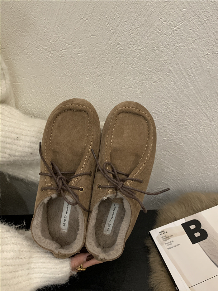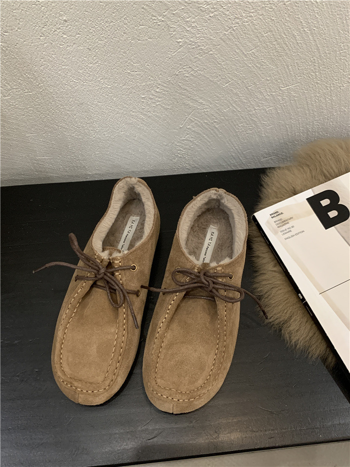 캥거루 가죽 레트로 로퍼 슬립온 여성용 2025 가을 겨울 보온 플러스 벨벳 신발 면화 신발