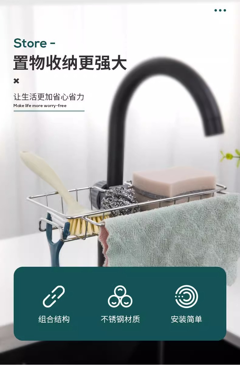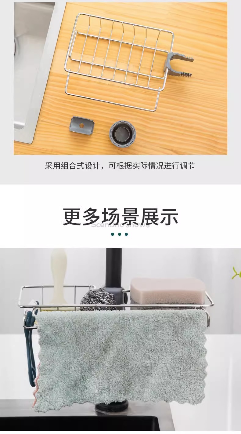 제조업체 주방 싱크대 선반 주방 용품 샤워기 싱크대 펀치 없는 스테인레스 스틸 수도꼭지 선반스토어 가기