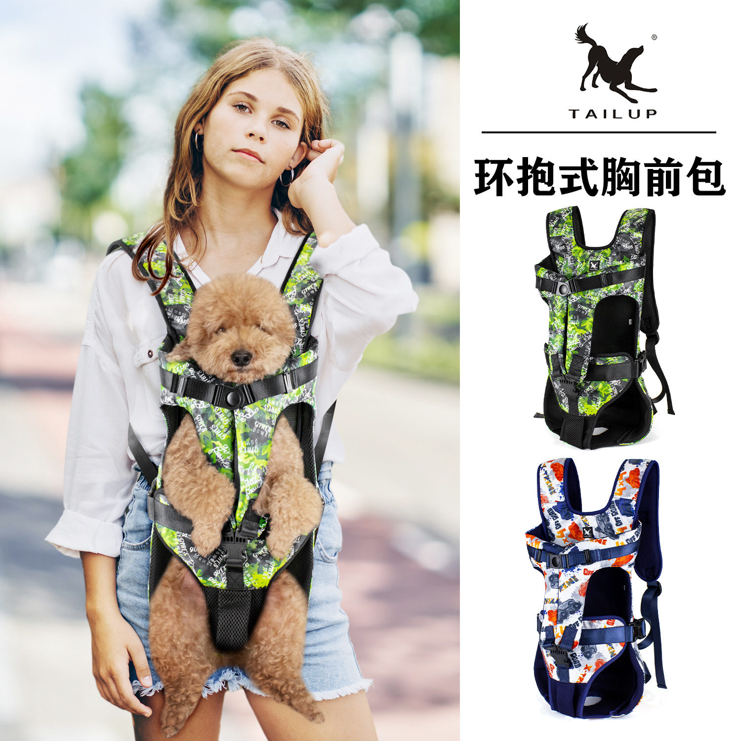 TAILUP宠物环抱式胸前包新款图案中小犬背包外出狗狗携带双肩布包