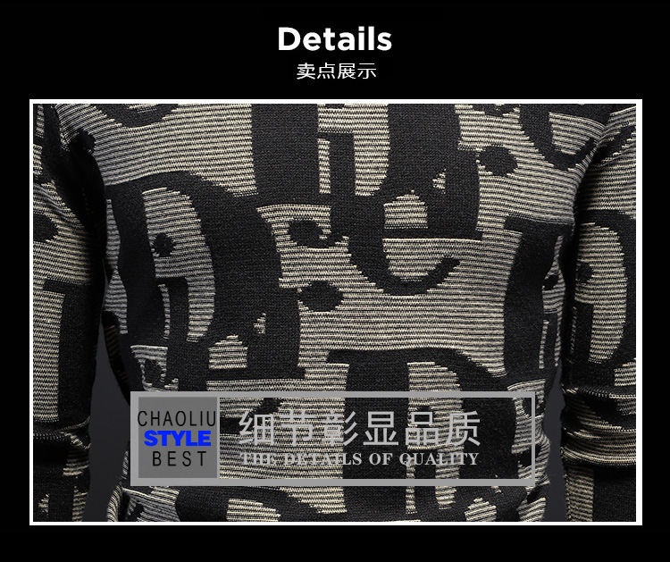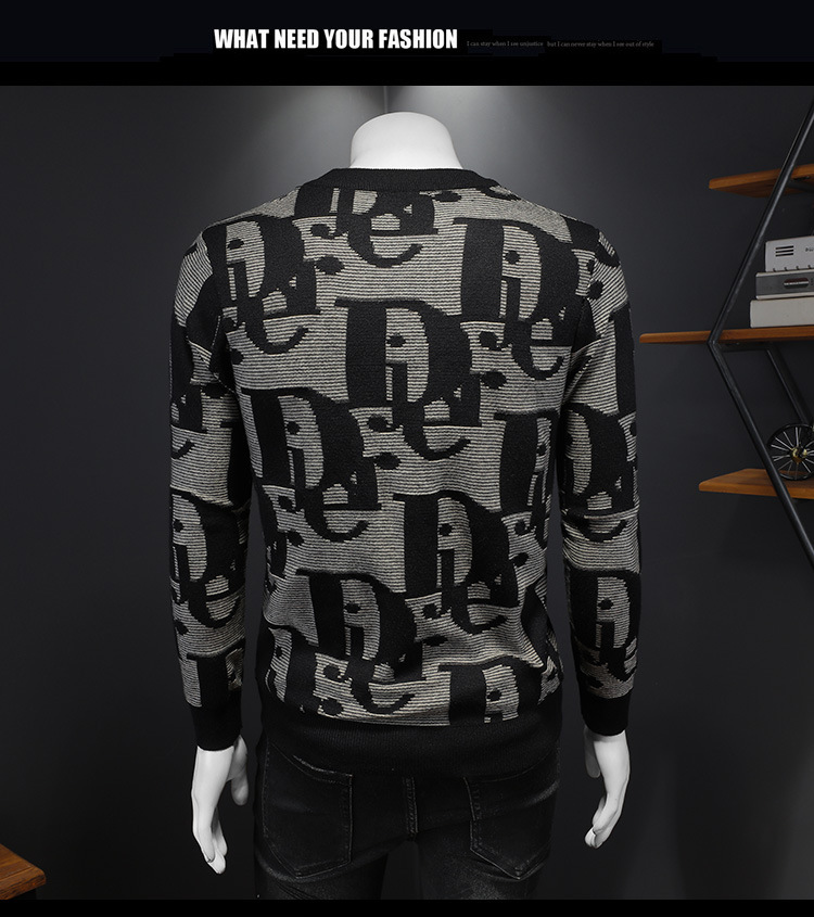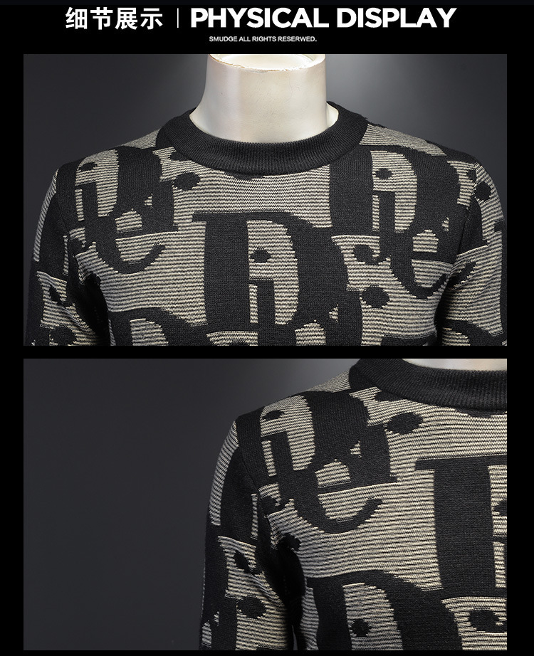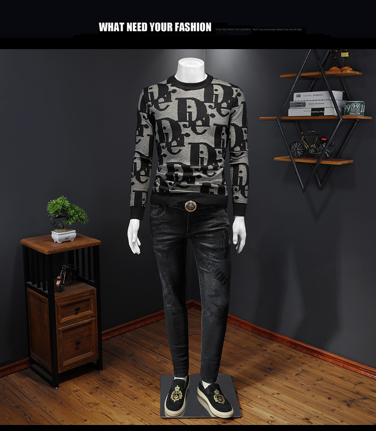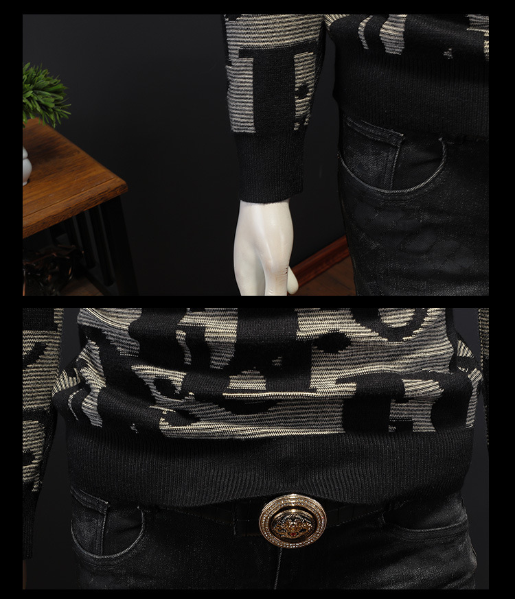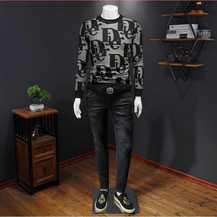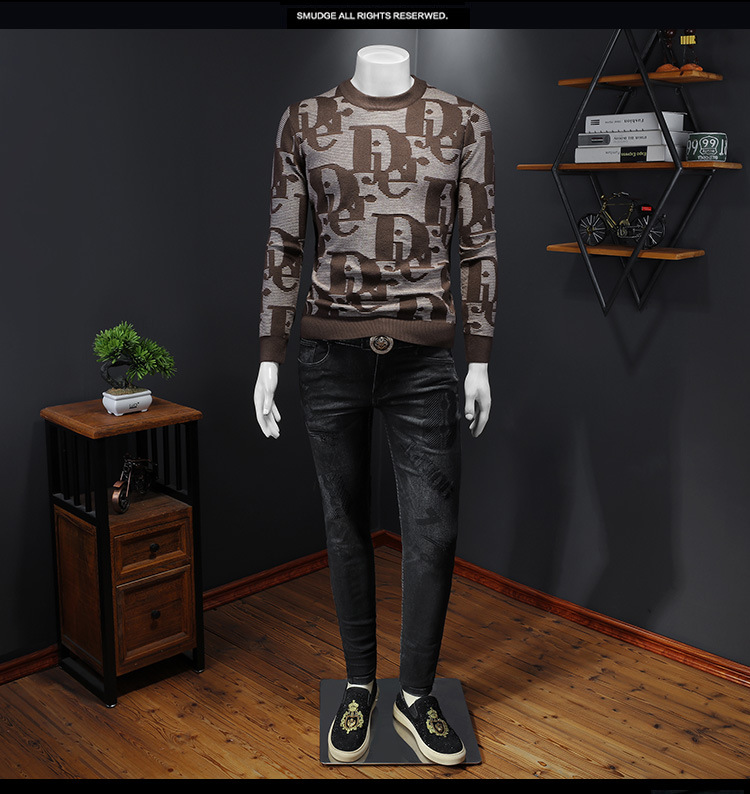 유럽 스타일 가을 겨울 신상 자카드 남성 니트 스웨터 트렌디한 한국 스타일 슬림핏 라운드넥 스웨터 이너웨어스토어 가기