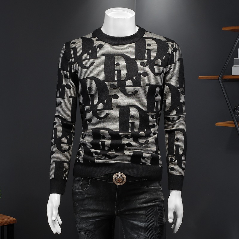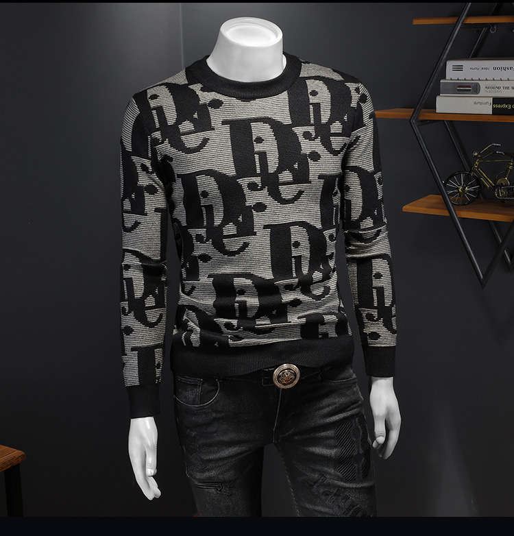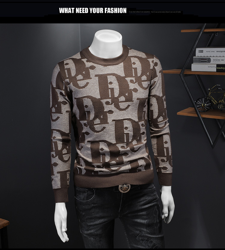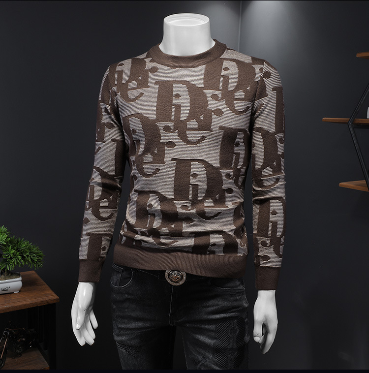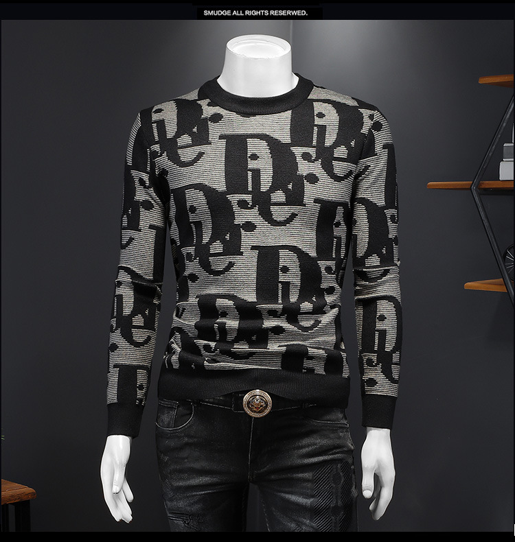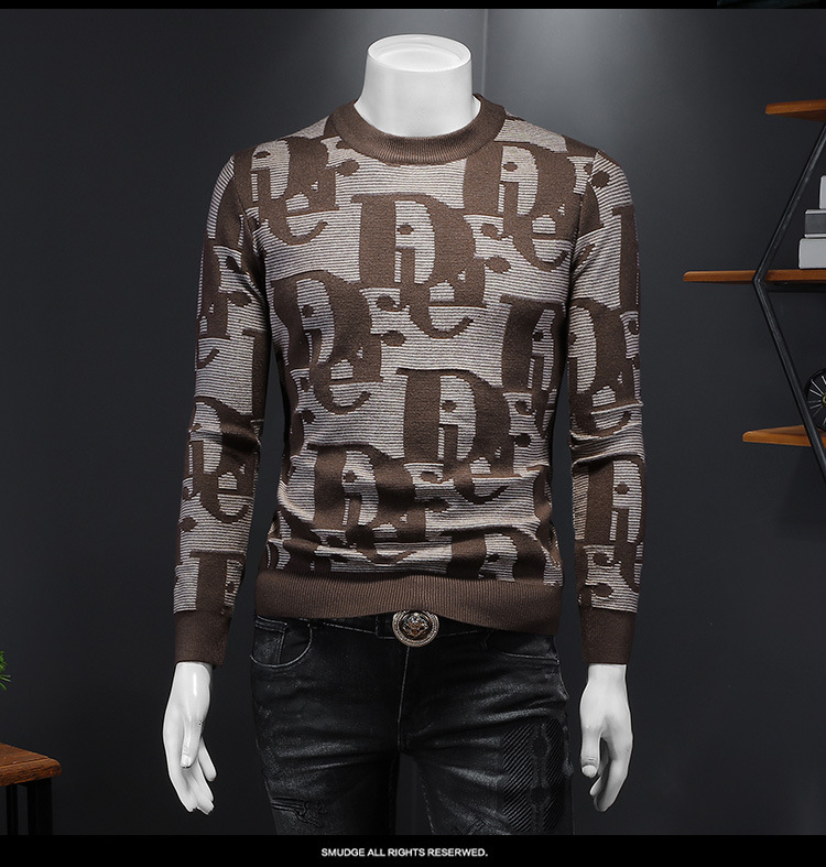 유럽 스타일 가을 겨울 신상 자카드 남성 니트 스웨터 트렌디한 한국 스타일 슬림핏 라운드넥 스웨터 이너웨어