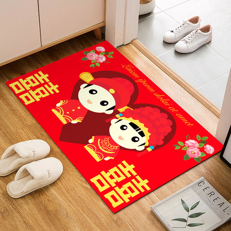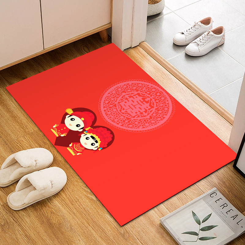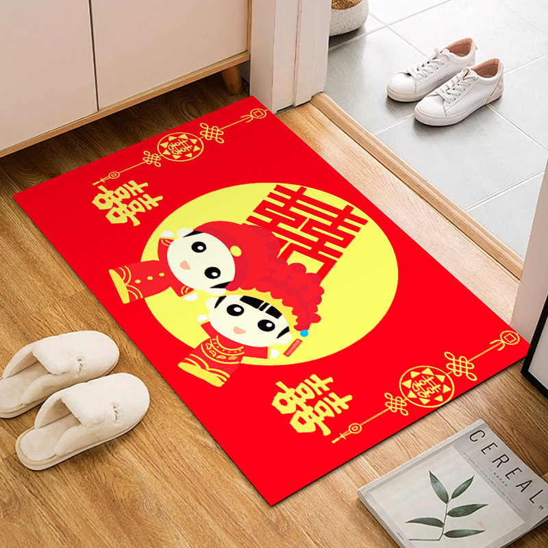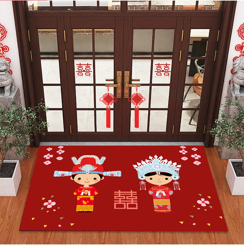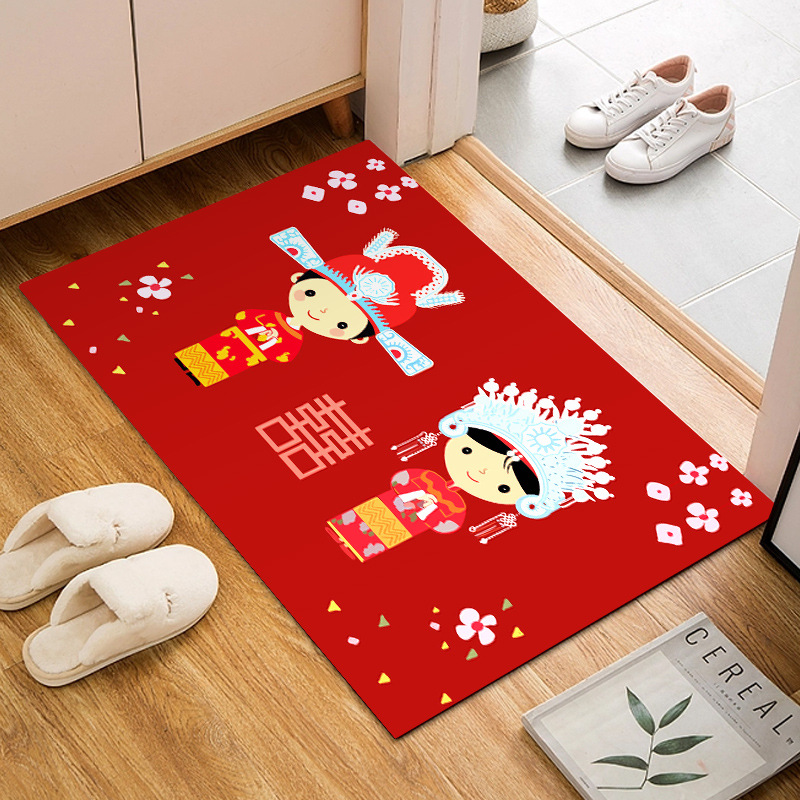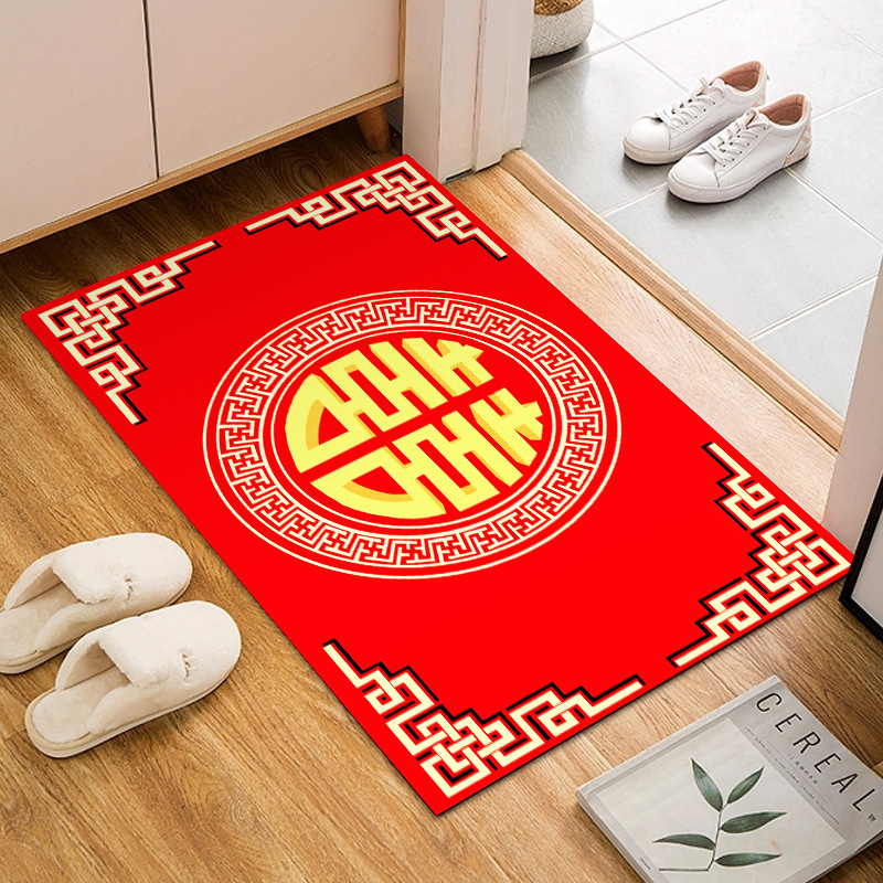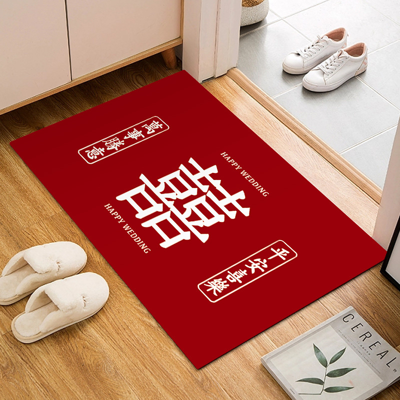 새로운 중국 스타일 웨딩 바닥 매트 축제 레드 카펫 웨딩 룸 장식 입구 문 매트 해피 단어 입구 문 매트