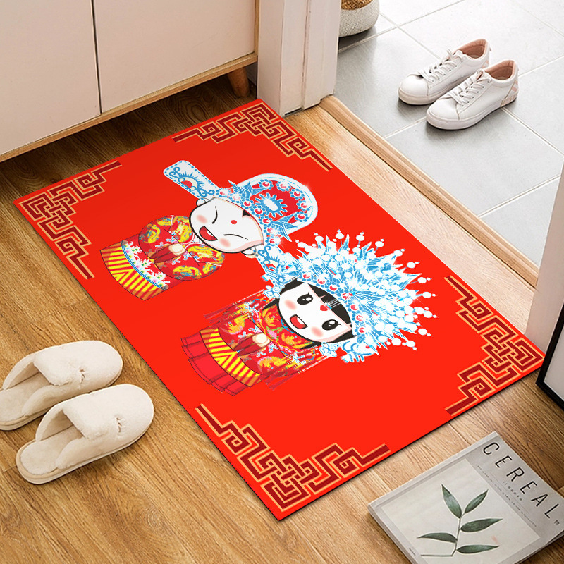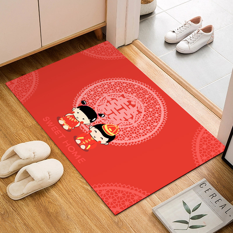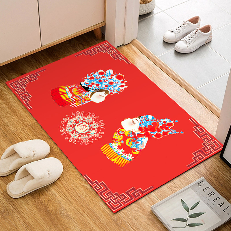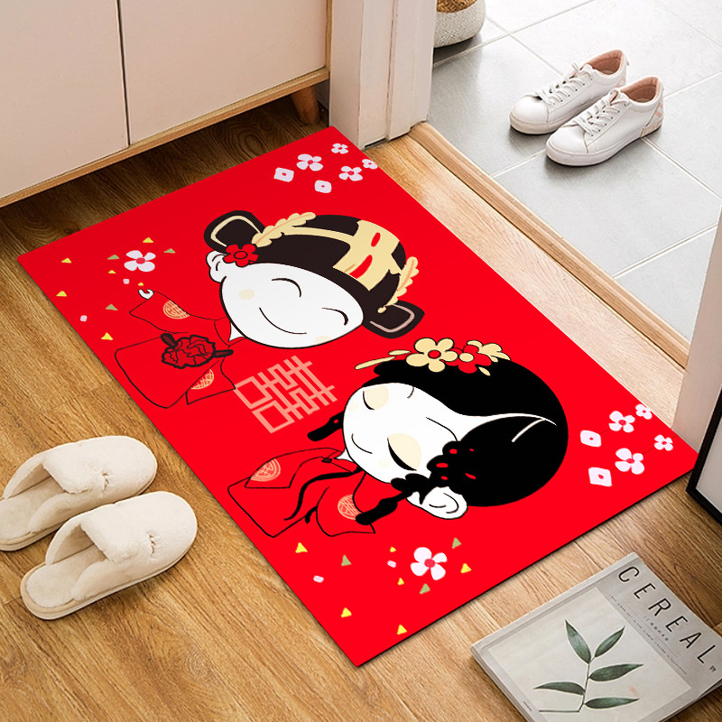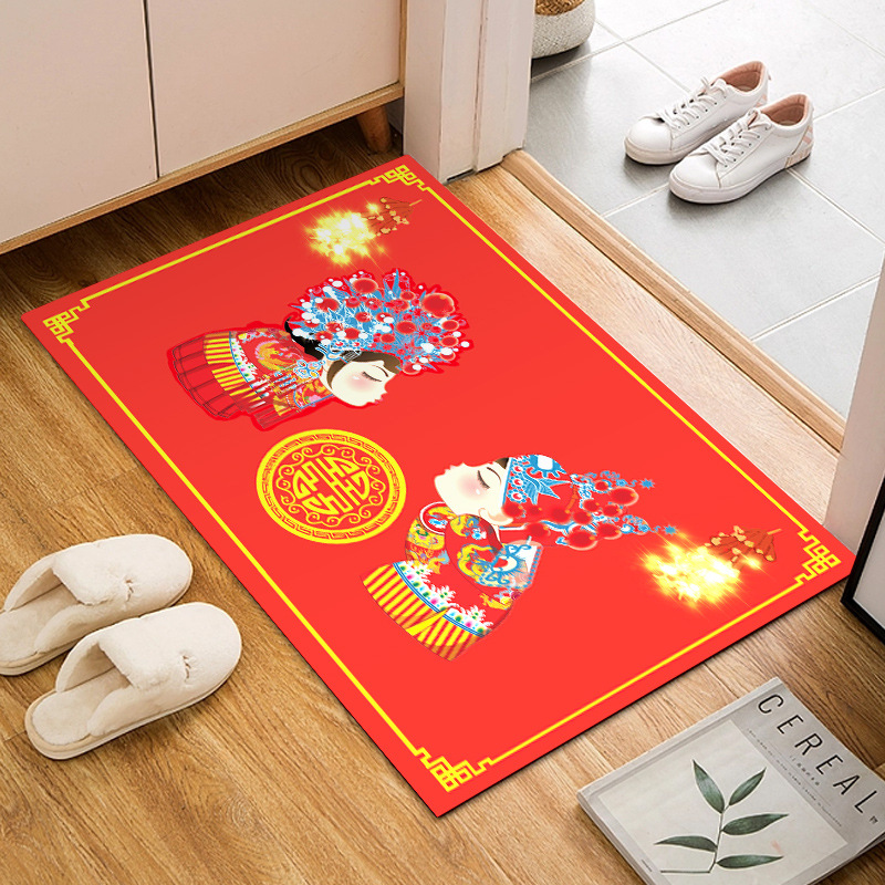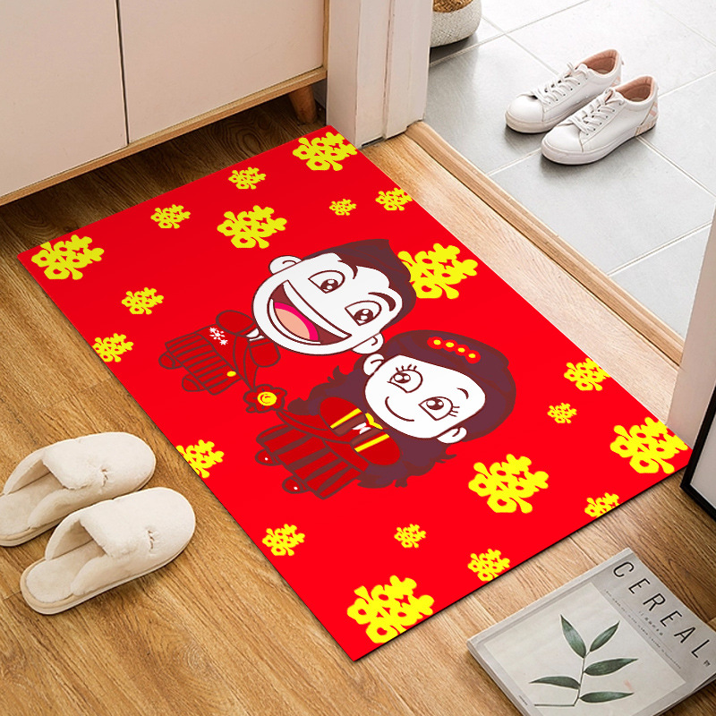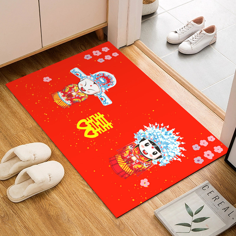 새로운 중국 스타일 웨딩 바닥 매트 축제 레드 카펫 웨딩 룸 장식 입구 문 매트 해피 단어 입구 문 매트
