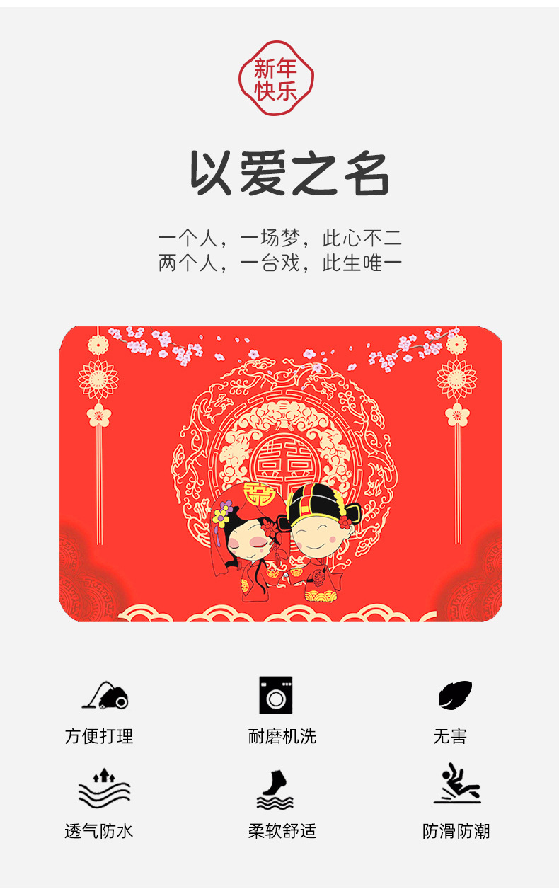 새로운 중국 스타일 웨딩 바닥 매트 축제 레드 카펫 웨딩 룸 장식 입구 문 매트 해피 단어 입구 문 매트스토어 가기