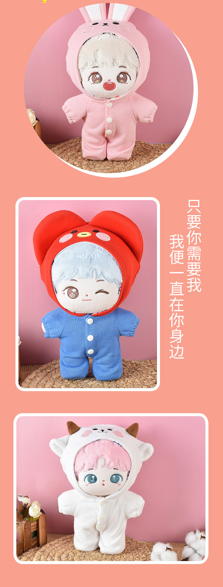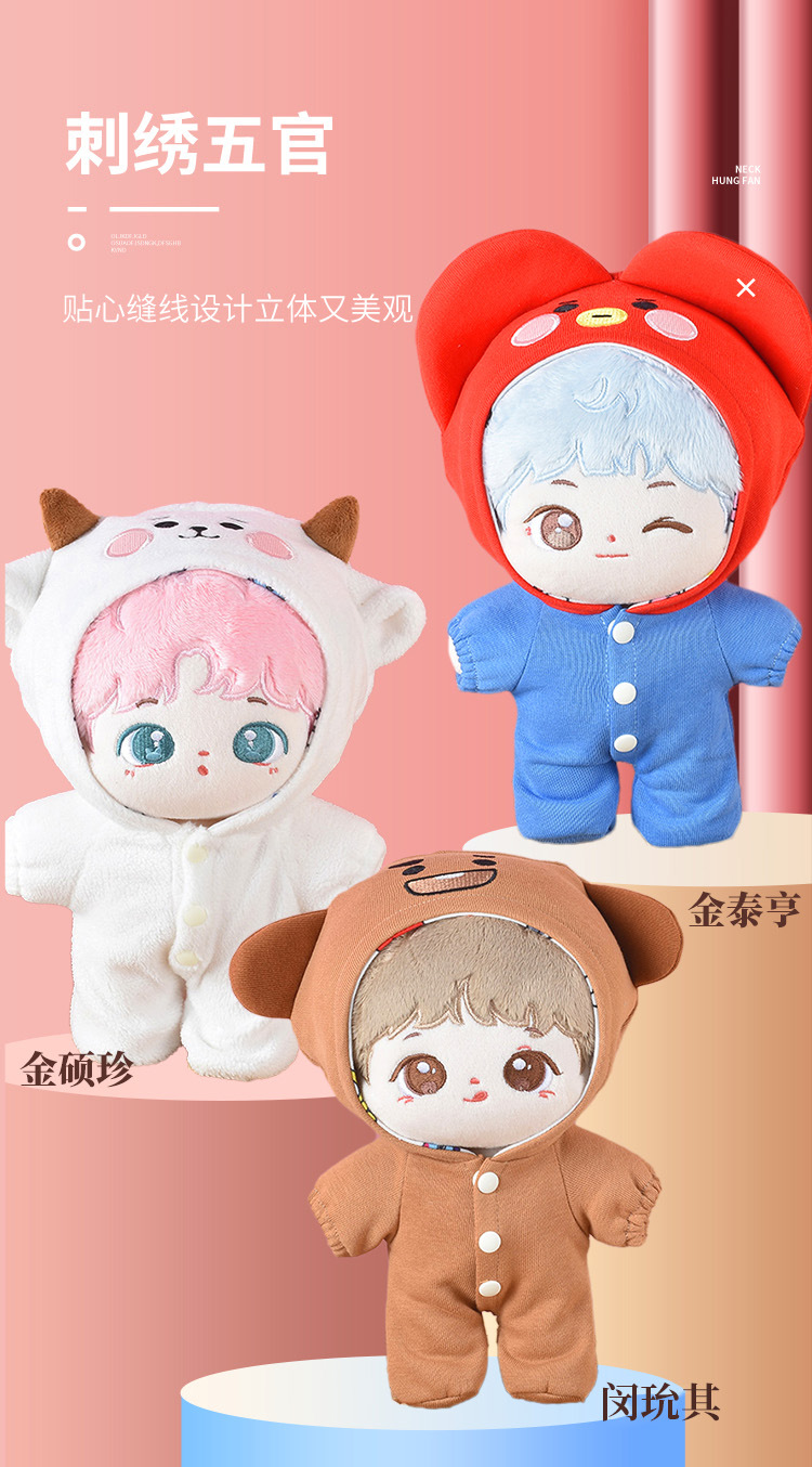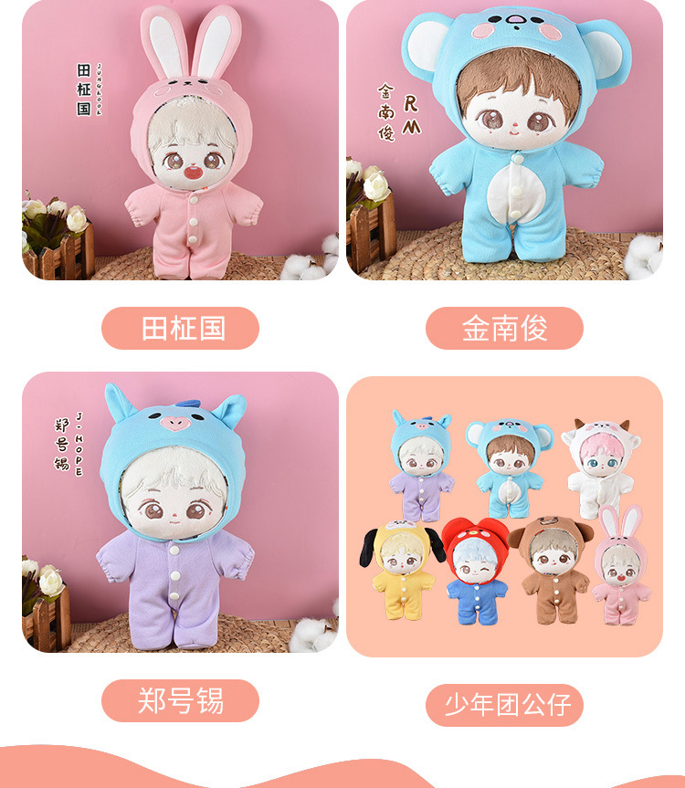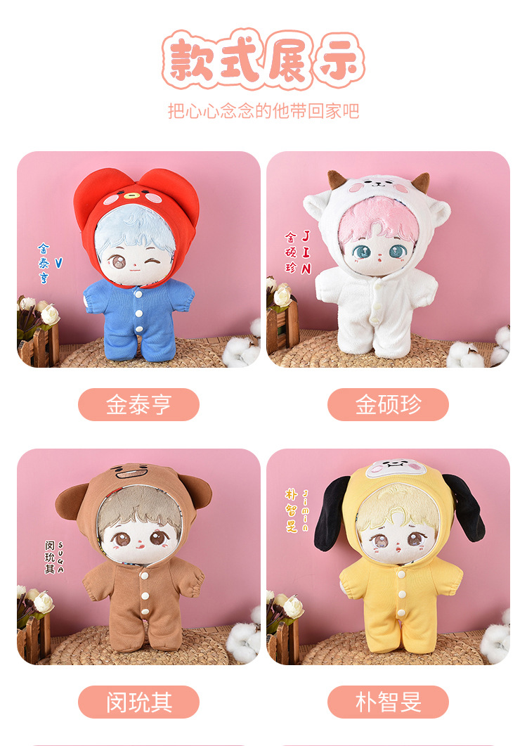 방탄소년단 피규어 인형 옷 세트, 푸지민, 김태형, 민영기, 태종국, 김남준 동물복