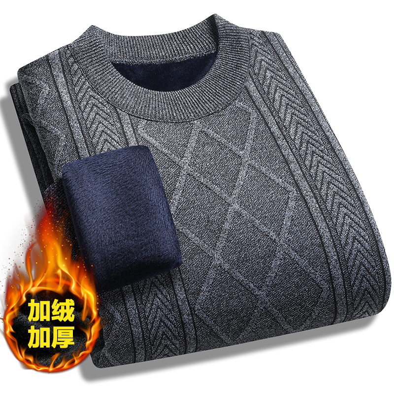 겨울 스웨터 남자의 기모 두꺼운베이스 셔츠 중년 및 노인 긴팔 니트웨어 가을과 겨울 따뜻한 탑 아빠의 세트스토어 가기