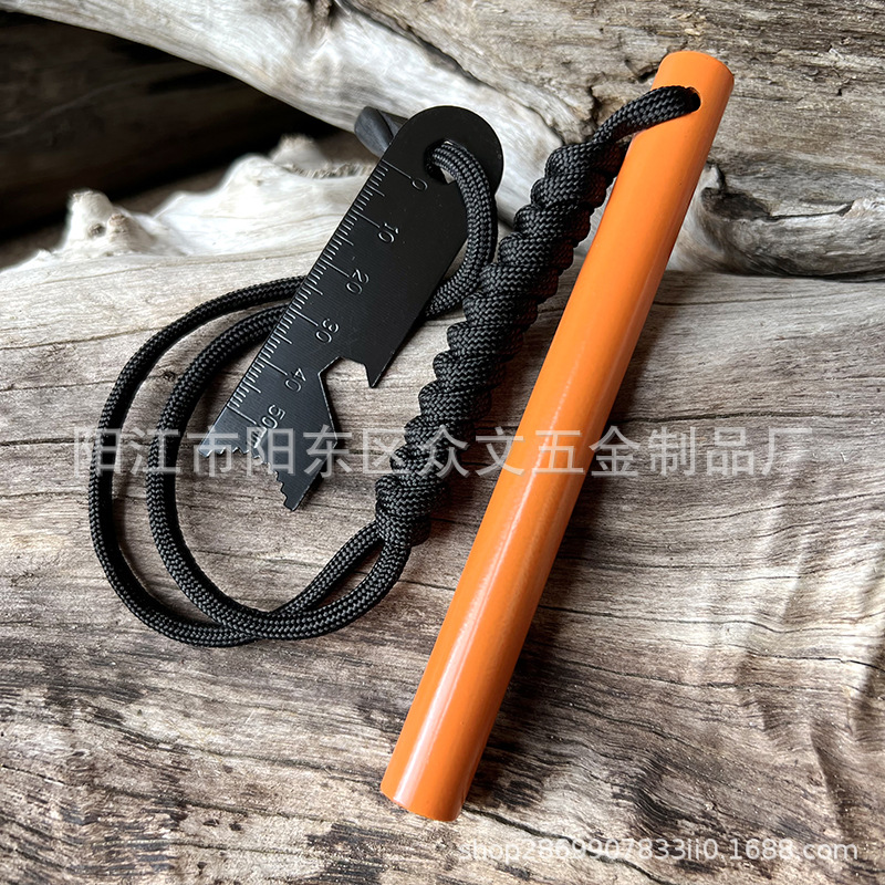 【规格】:12.7*127mm实心棒加不锈钢打火刮片,7芯伞绳或反光7芯伞绳