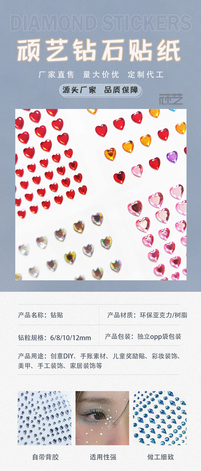 판타지 사랑 보석 크리스탈 스티커 소녀 원피스 소재 크리스탈 다이아몬드 빛나는 스테레오 스티커 수제 장식