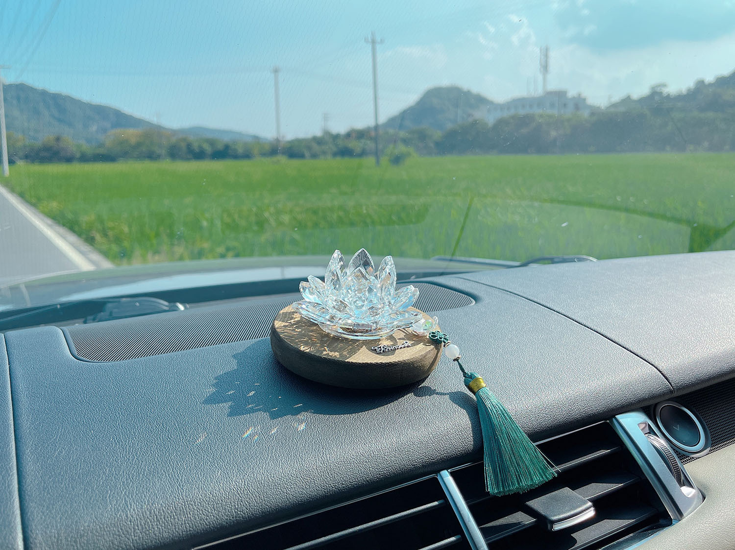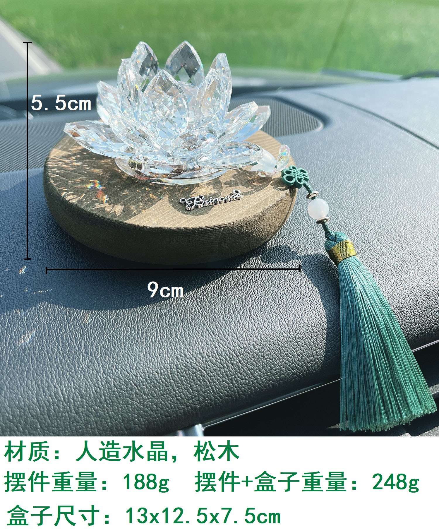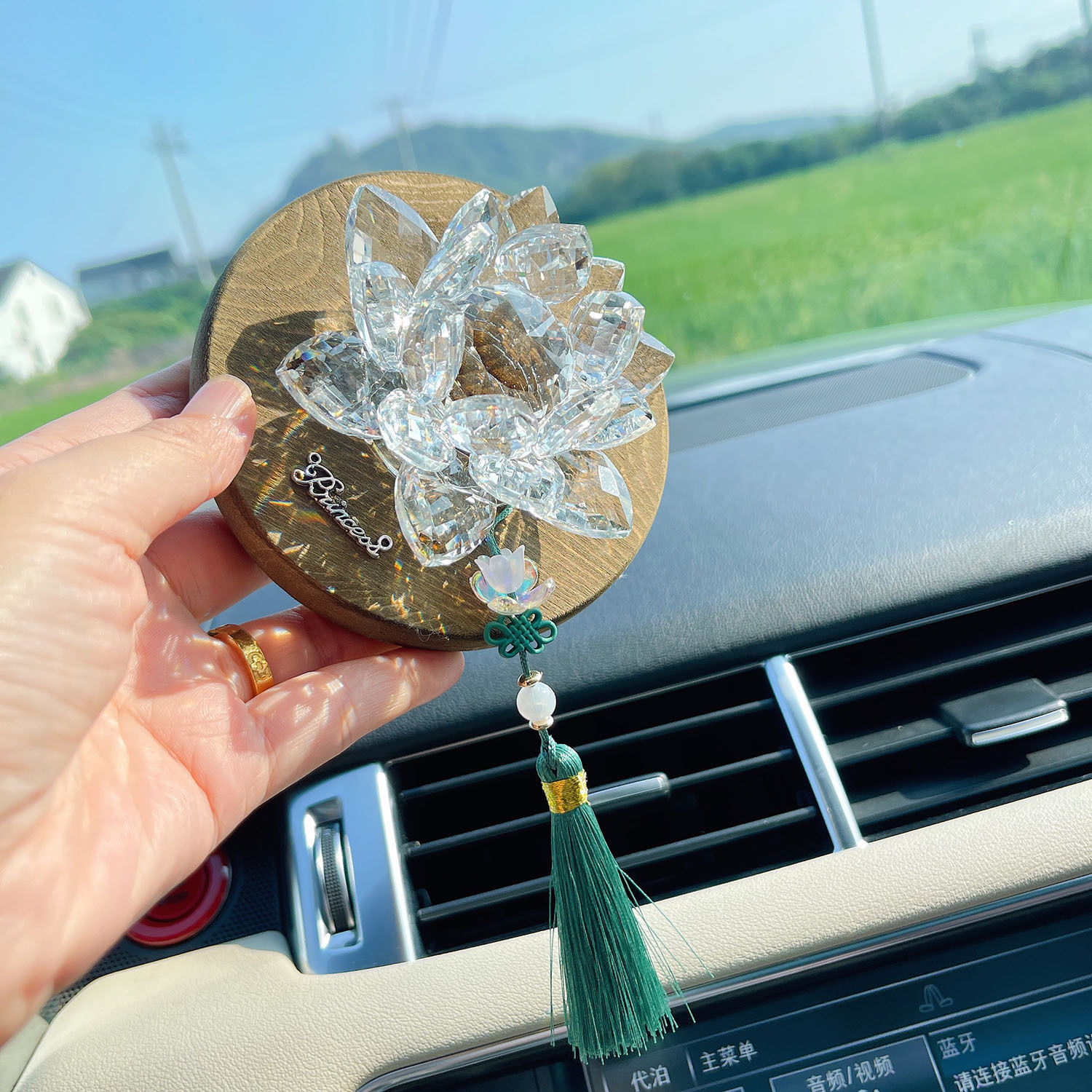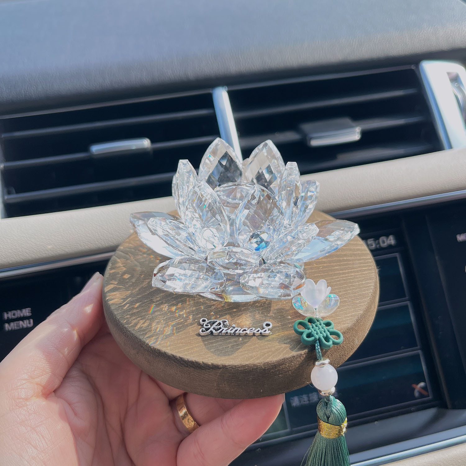 행운 로터스 크리스탈 로터스 자동차 장식품 자동차 장식 남성과 여성을위한 국가 스타일 나무 자동차 중앙 콘솔