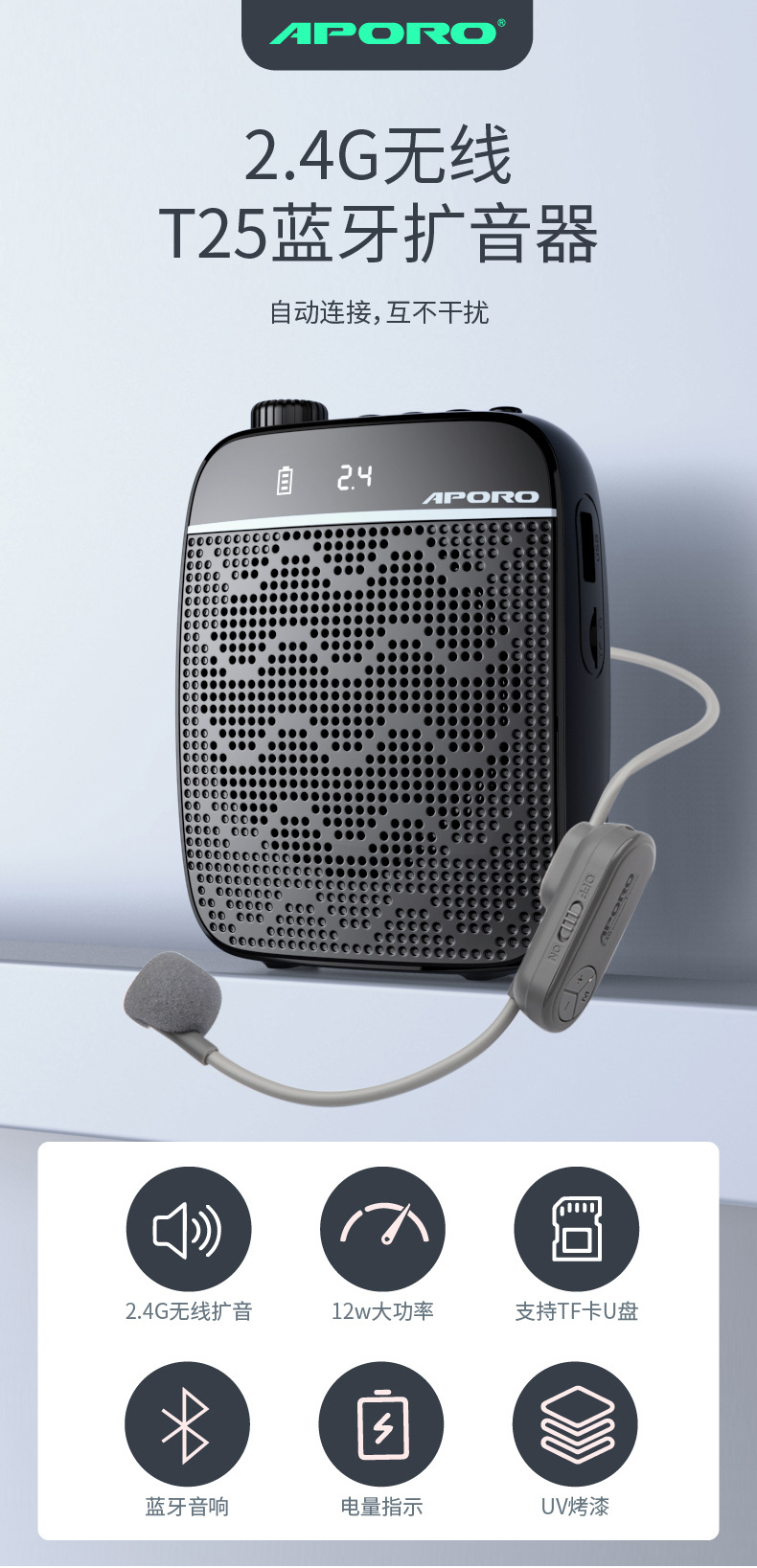 APOROT25 블루투스 2.4G 무선 확성기 카드 삽입형 U 디스크 FM 라디오 녹음 교육용 무선 휴대용스토어 가기