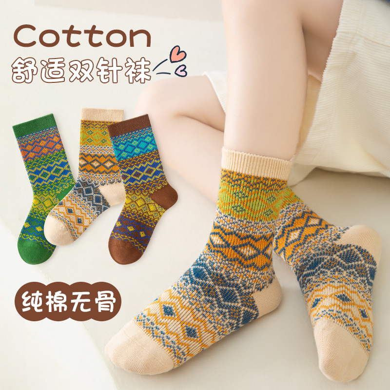 어린이 양말 봄과 가을 얇은 중간 길이 양말 여아 중간 및 큰 어린이 이중 바늘 면 양말 가을 여아 뼈없는 스타킹스토어 가기