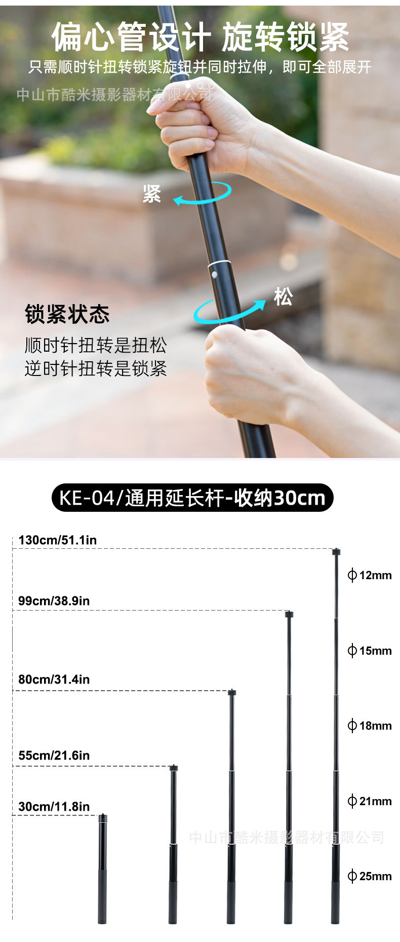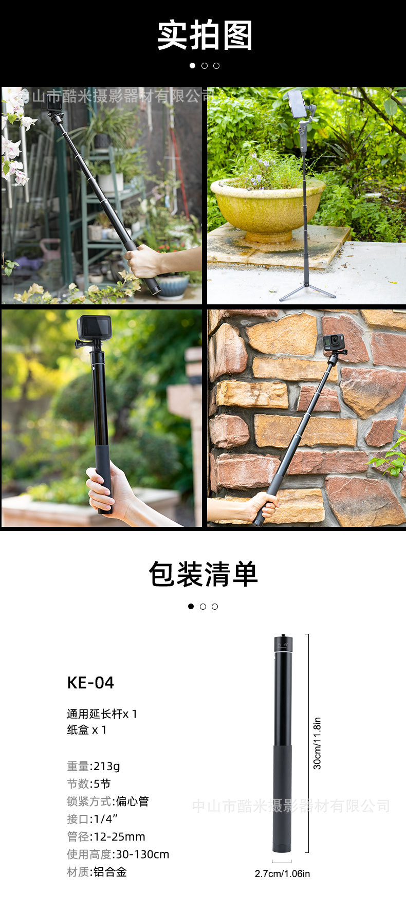 알루미늄 합금 1.3 미터 긴로드 Dajiang Zhiyun Feiyu 안정제 텔레스코픽 로드 휴대 전화 카메라 SLR 확장로드스토어 가기