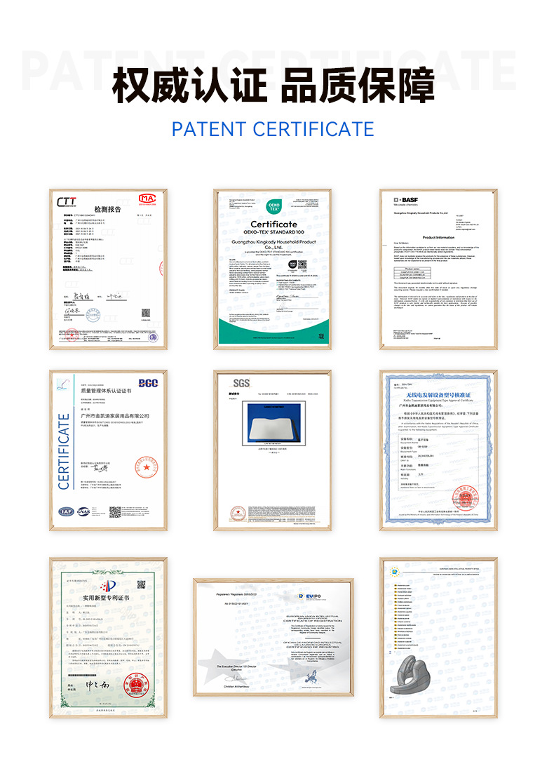 产品均通过OEKO-TEX®、CertiPUR-US®、ISO 9001等资质认证,