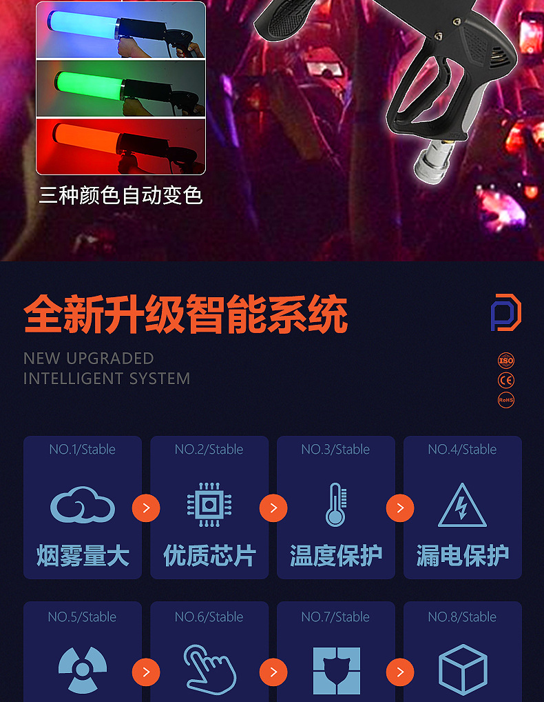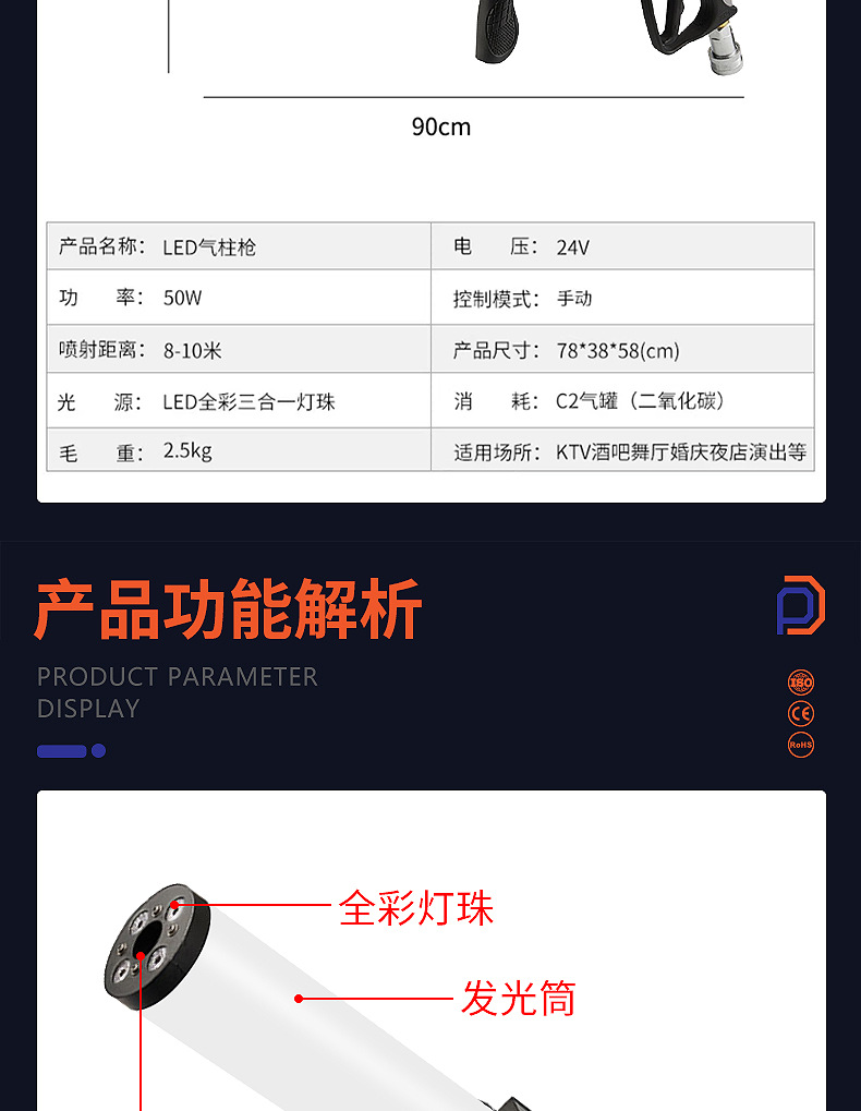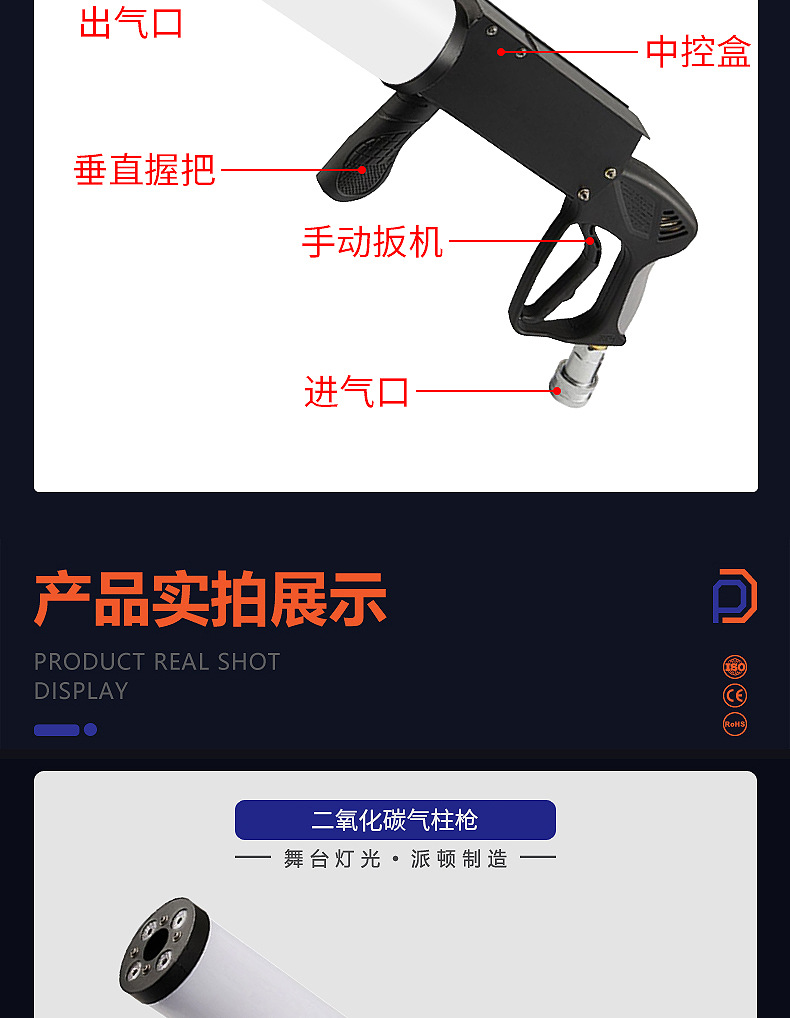 패튼 LED 이산화탄소 가스 칼럼 건 KTV 디스코 바 DJ 특수 효과 소품 CO2 핸드 헬드 야광 연기 총