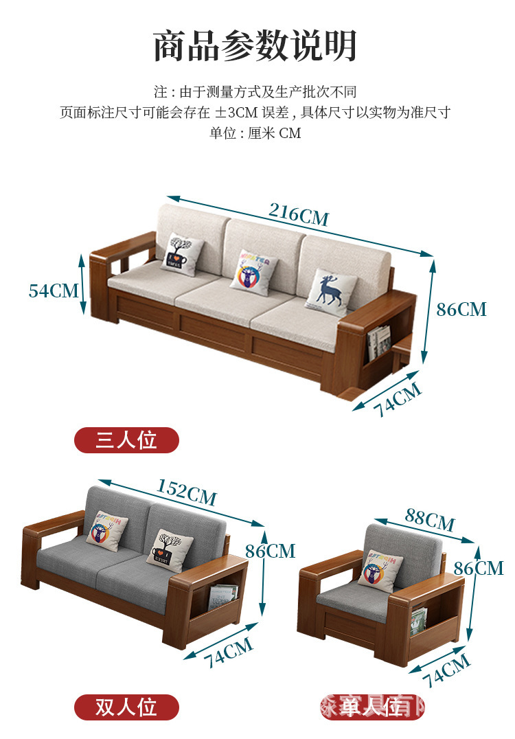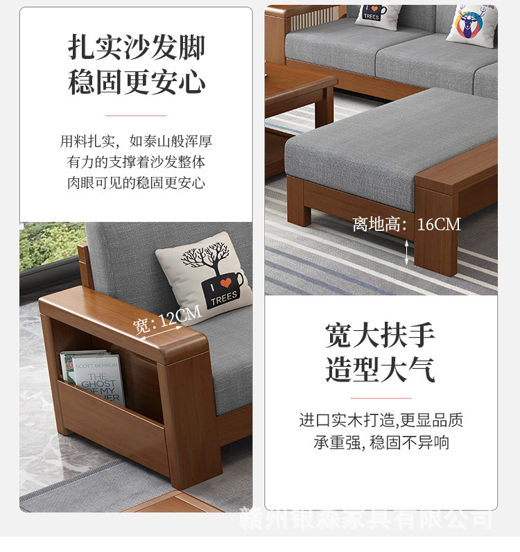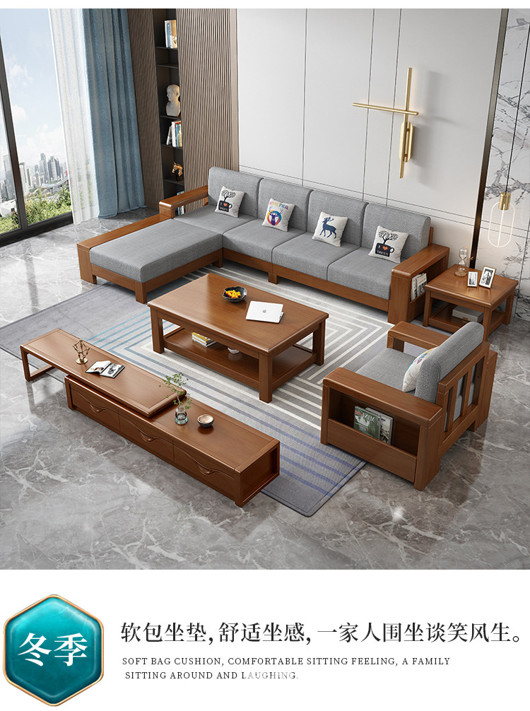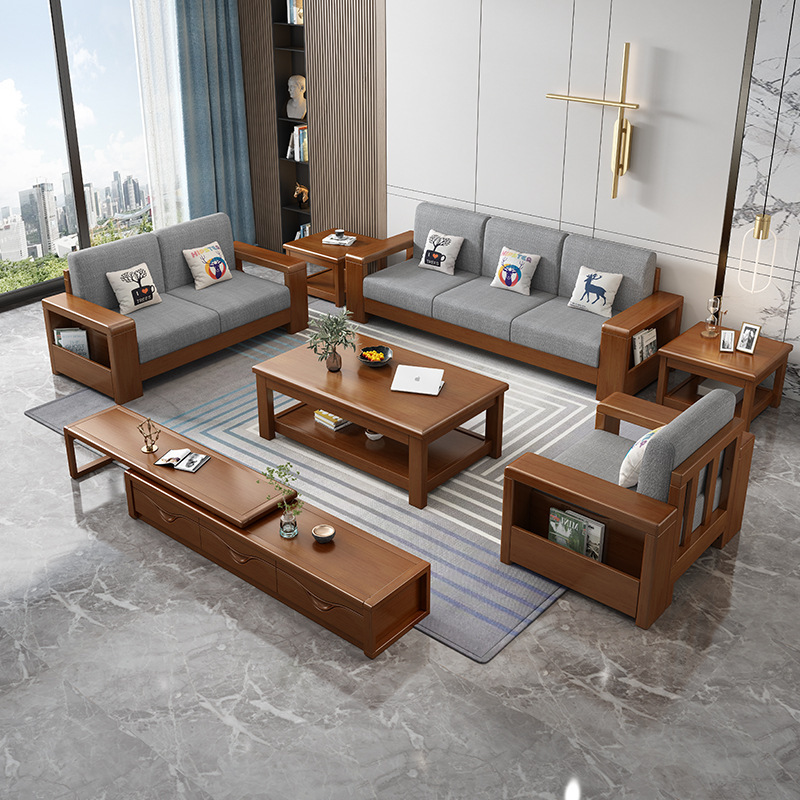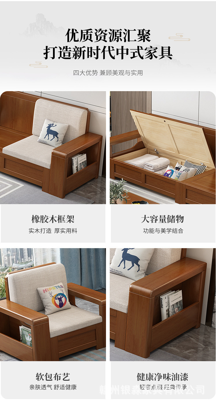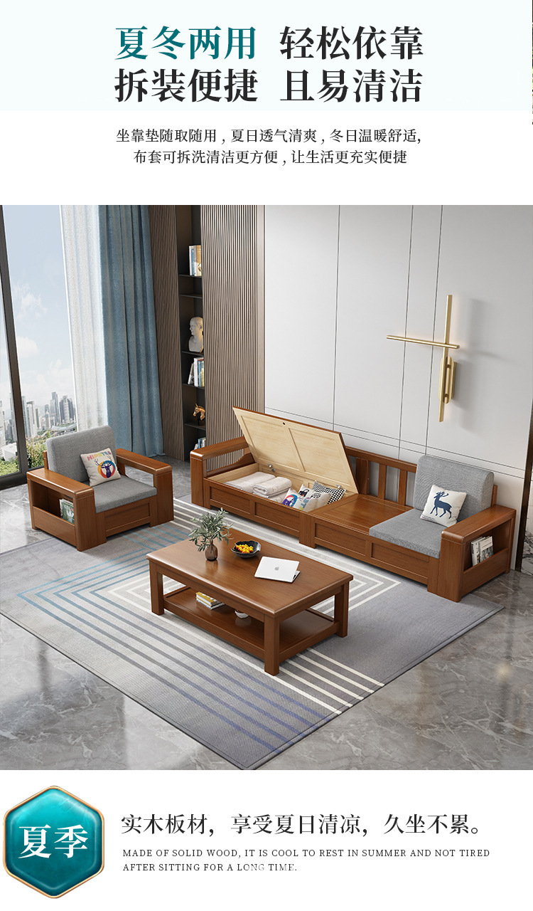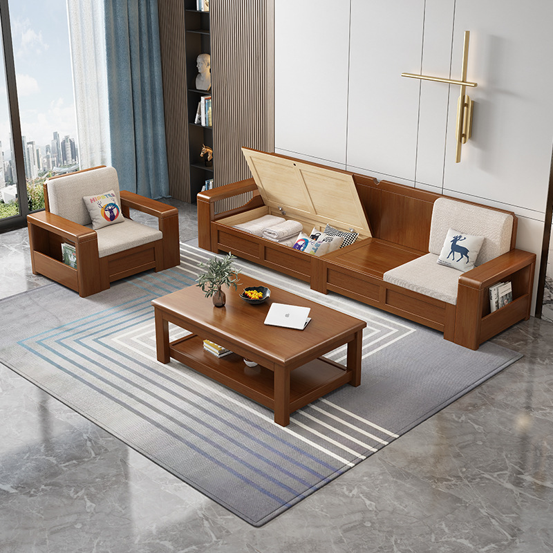 중국 스타일의 단단한 나무 소파 조합 거실 가구 크고 작은 아파트 현대 간단한 다기능 높은 상자 저장 소파스토어 가기