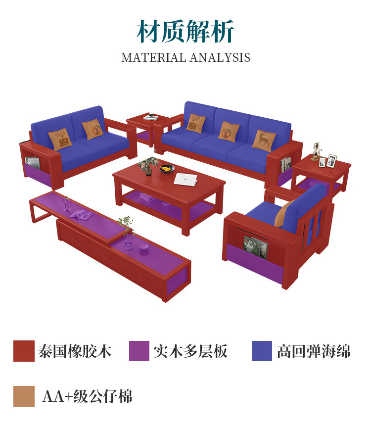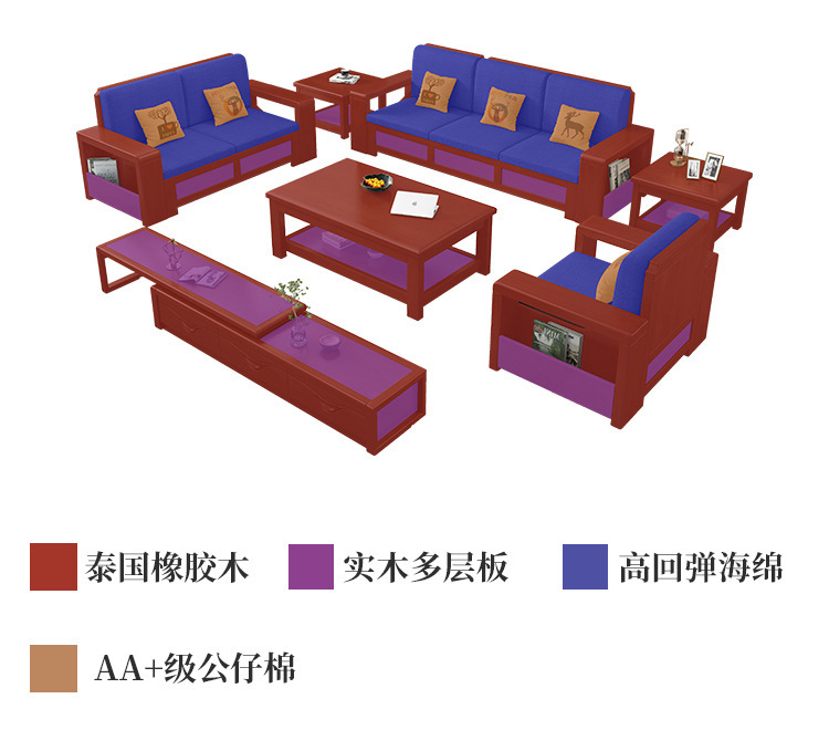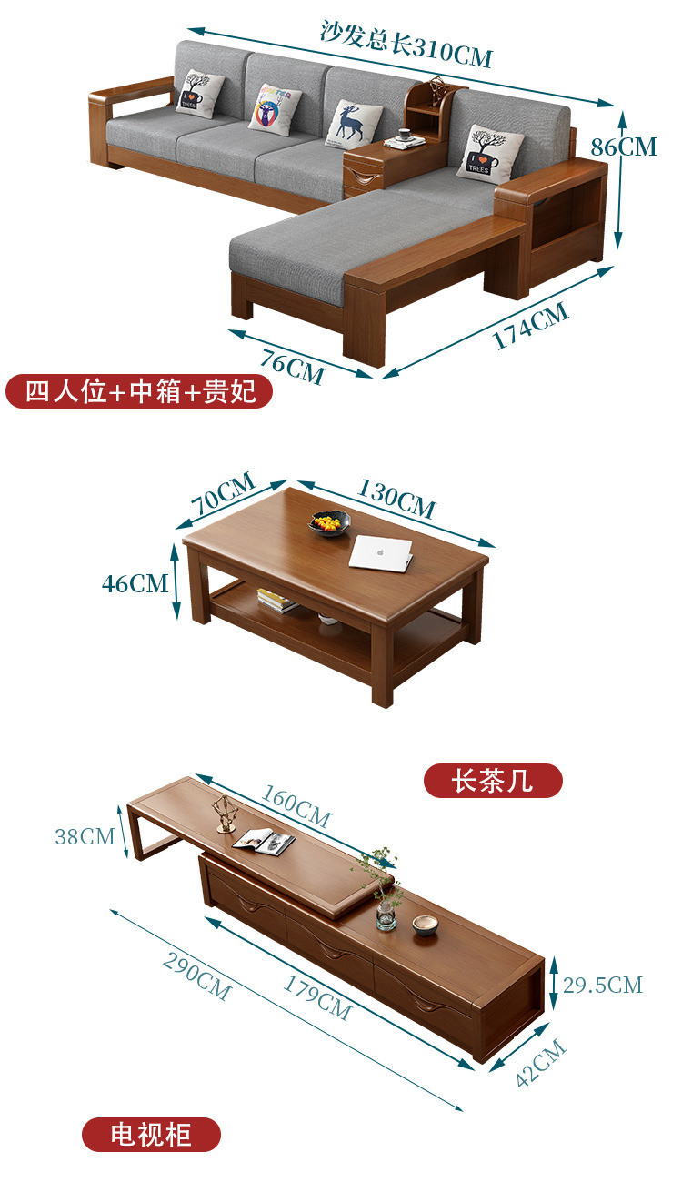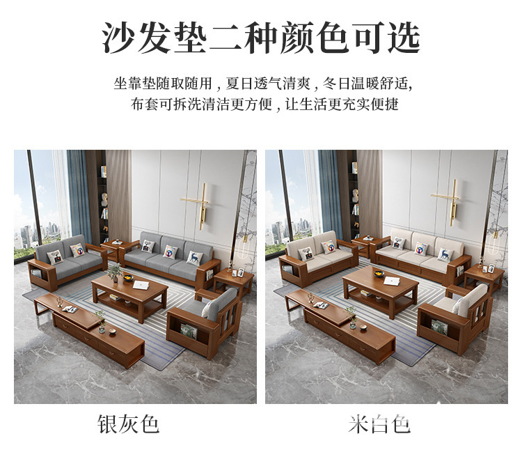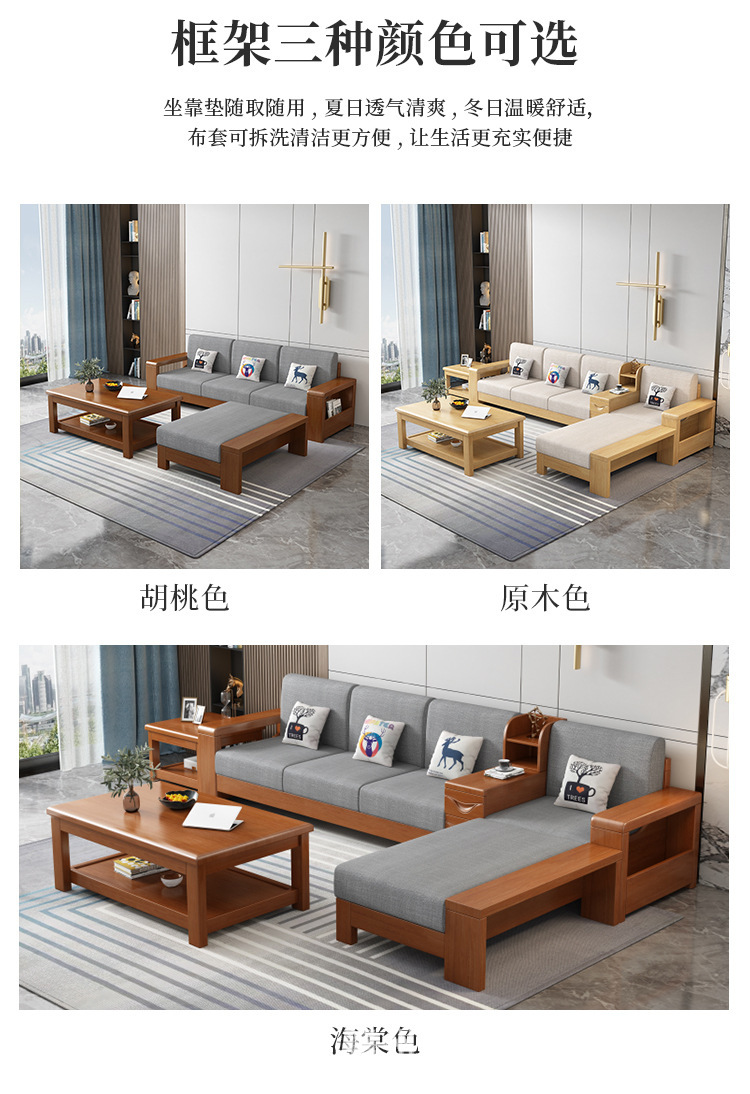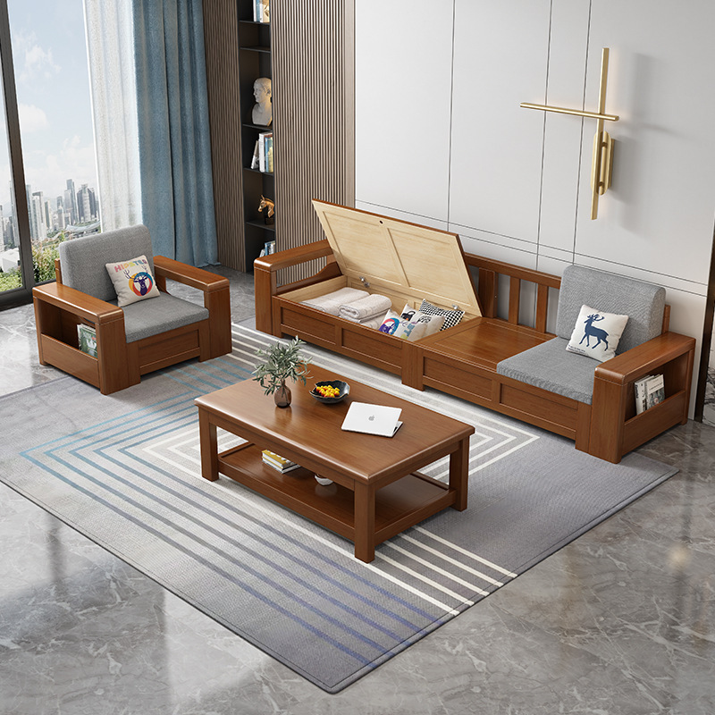 중국 스타일의 단단한 나무 소파 조합 거실 가구 크고 작은 아파트 현대 간단한 다기능 높은 상자 저장 소파