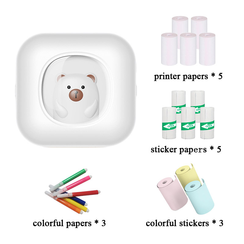 • 흰색 + 인쇄 용지 5롤 + 스티커 5롤 + 컬러 용지 3롤 + 색펜
