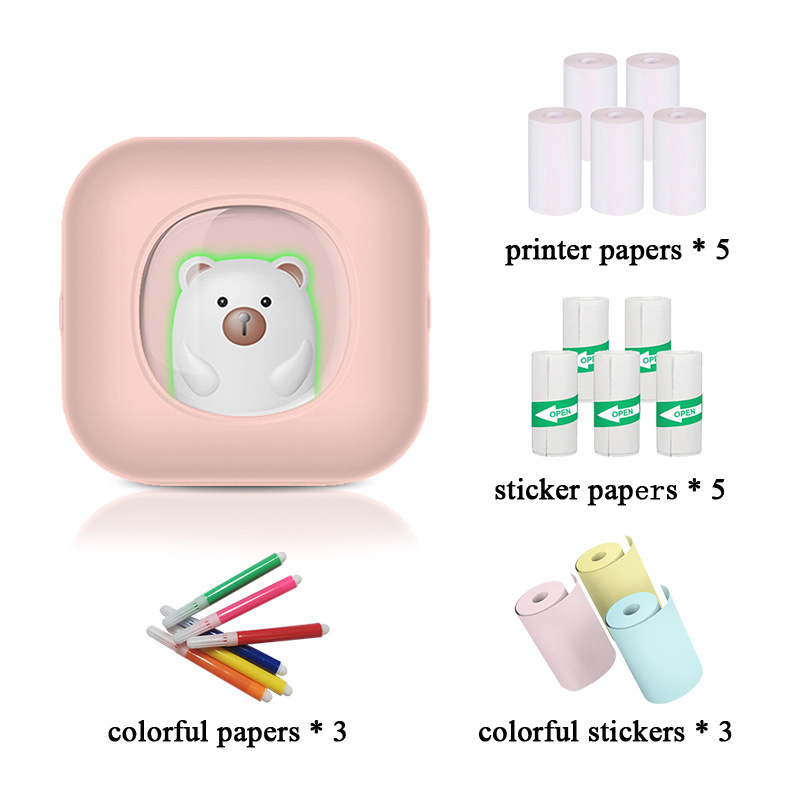 • 핑크색 + 프린트 용지 5롤 + 라벨지 5롤 + 컬러 용지 3롤 + 색연필