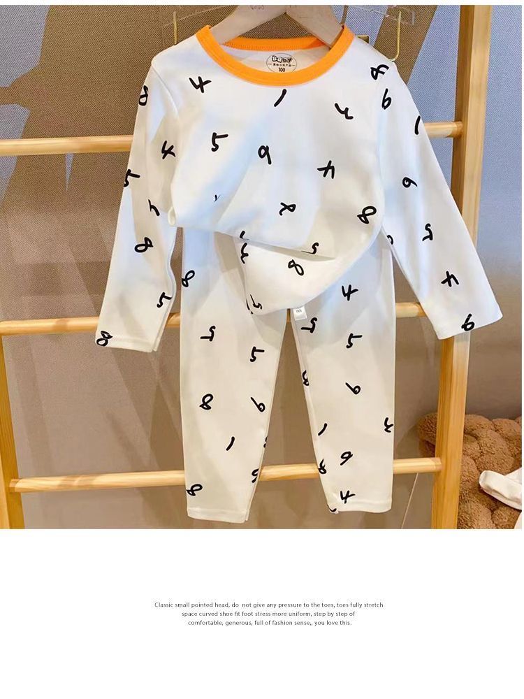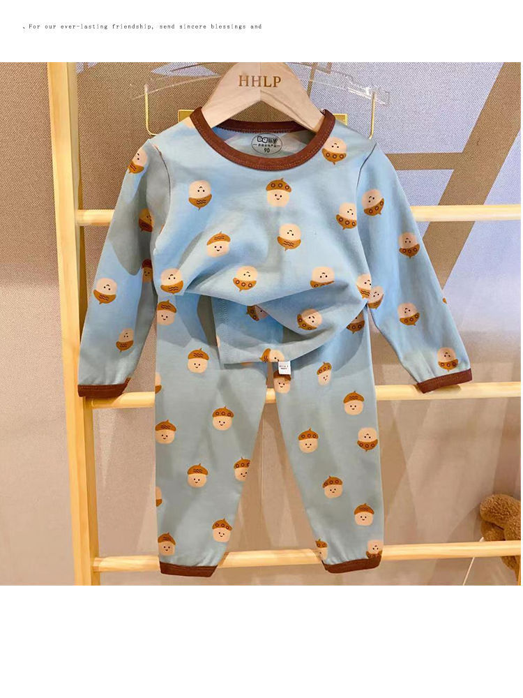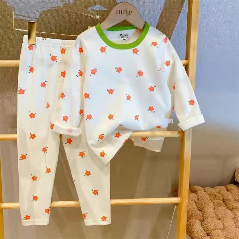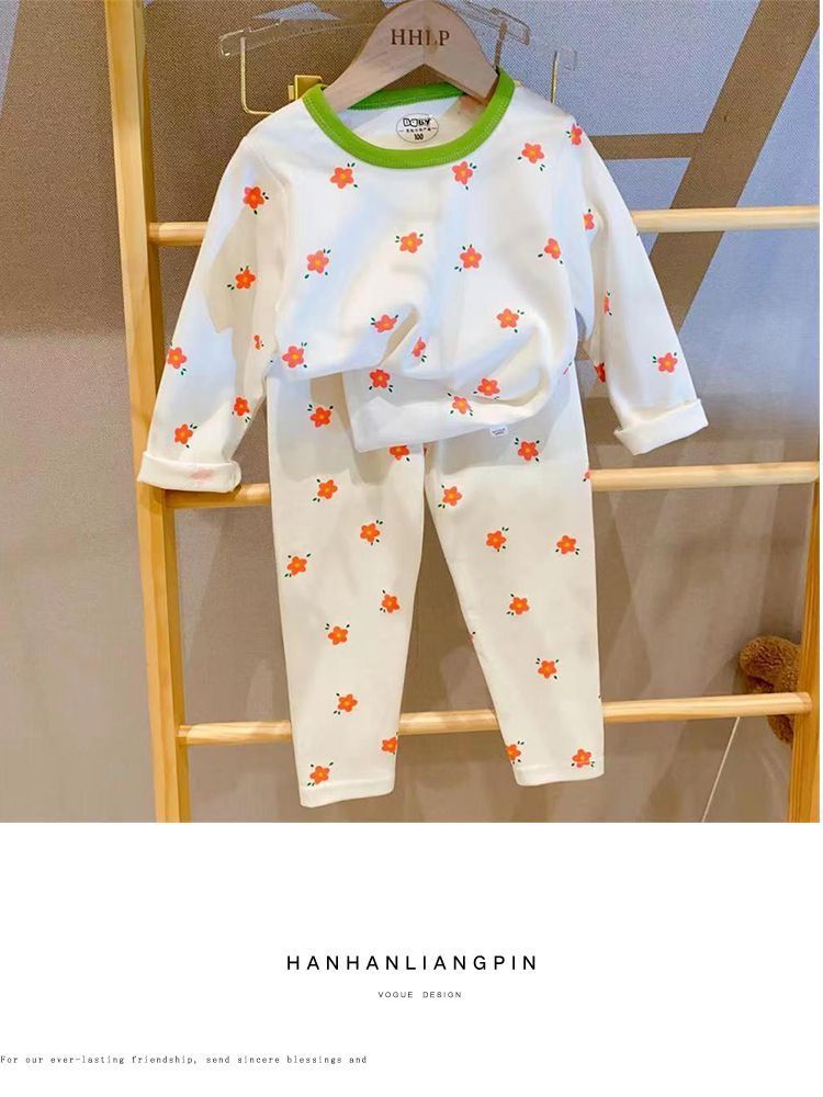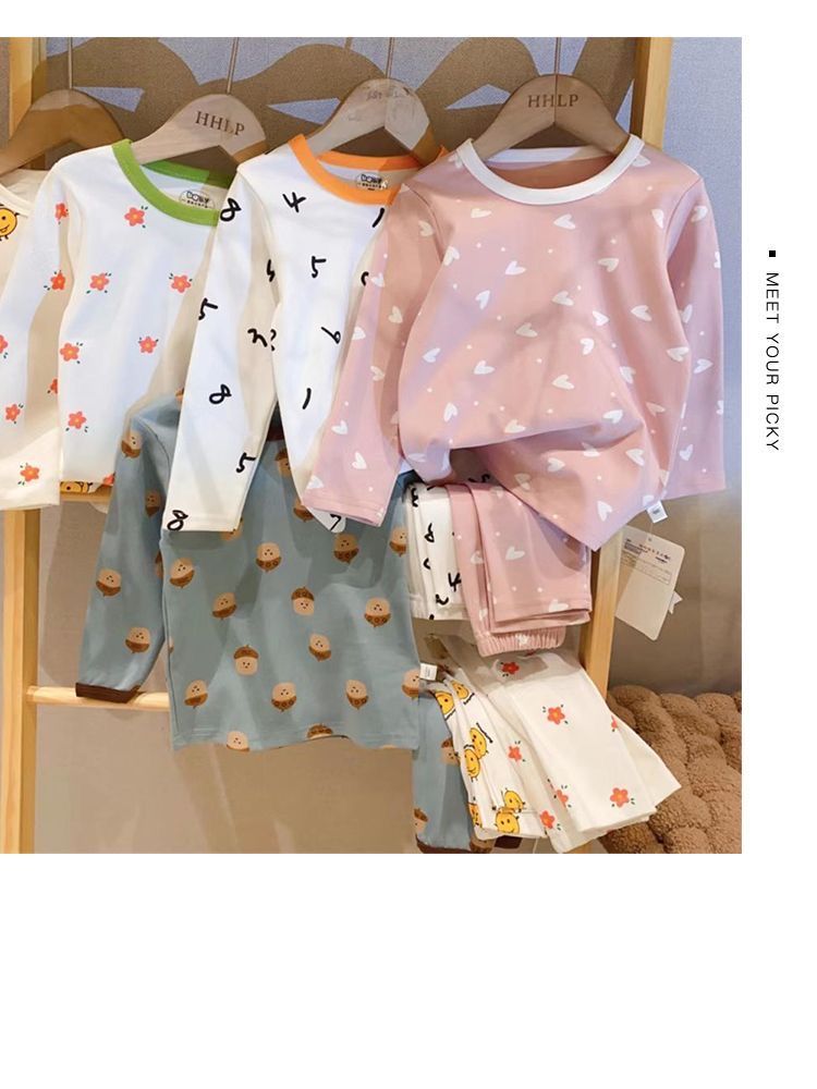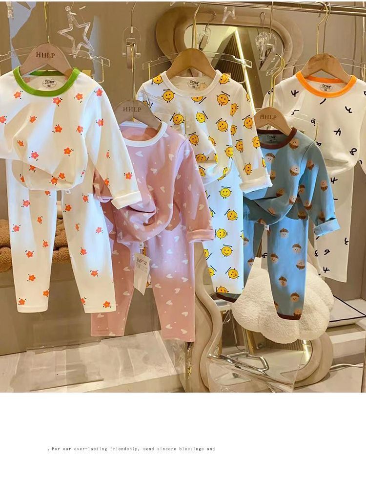 부드러운 패브릭 칭찬 한국 가을과 겨울 어린이 면 꽃 홈웨어 속옷 세트 소년과 소년의 가을 옷 바지스토어 가기