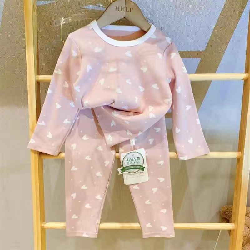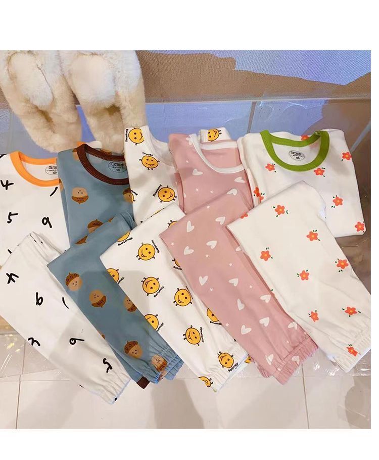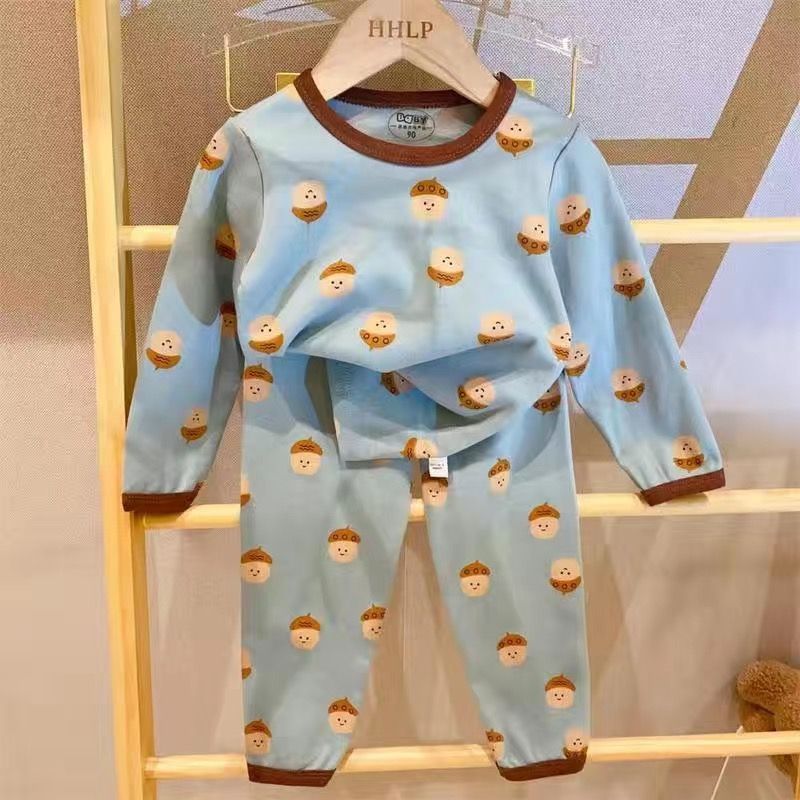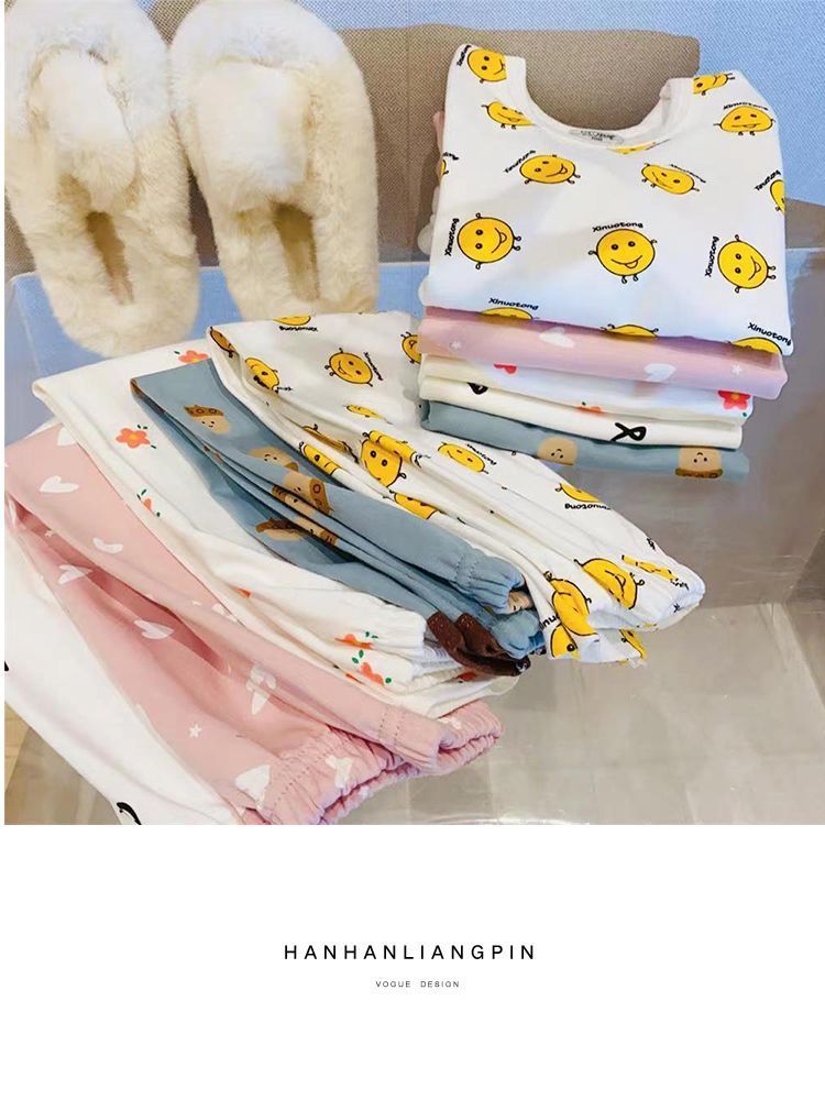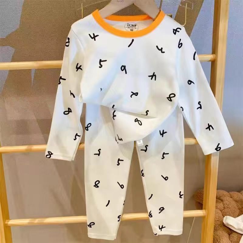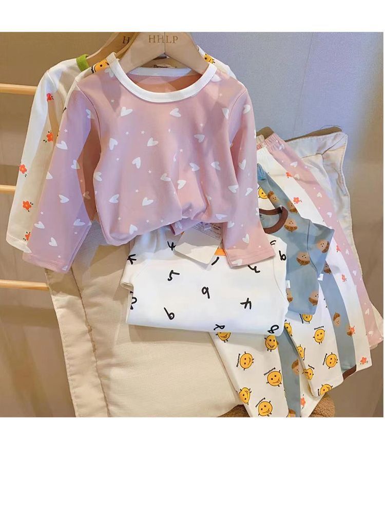 부드러운 패브릭 칭찬 한국 가을과 겨울 어린이 면 꽃 홈웨어 속옷 세트 소년과 소년의 가을 옷 바지스토어 가기