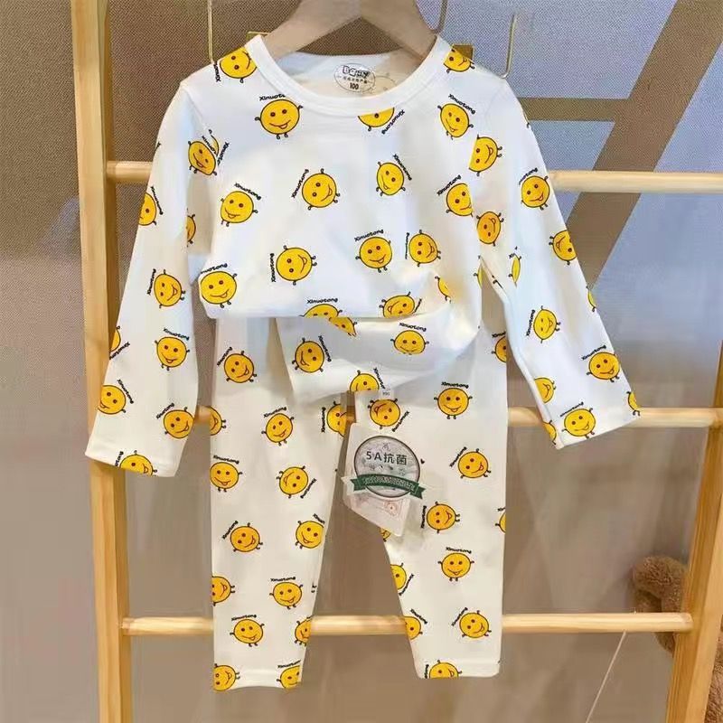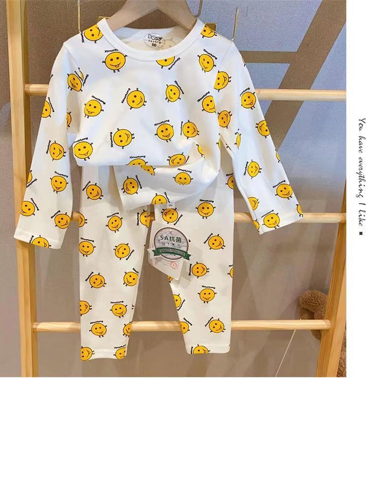 부드러운 패브릭 칭찬 한국 가을과 겨울 어린이 면 꽃 홈웨어 속옷 세트 소년과 소년의 가을 옷 바지