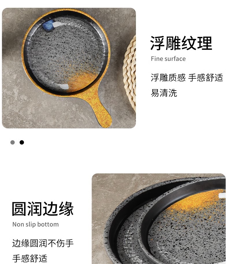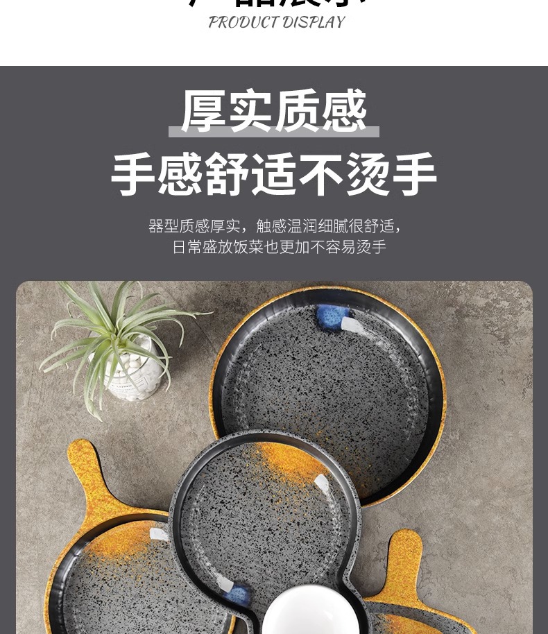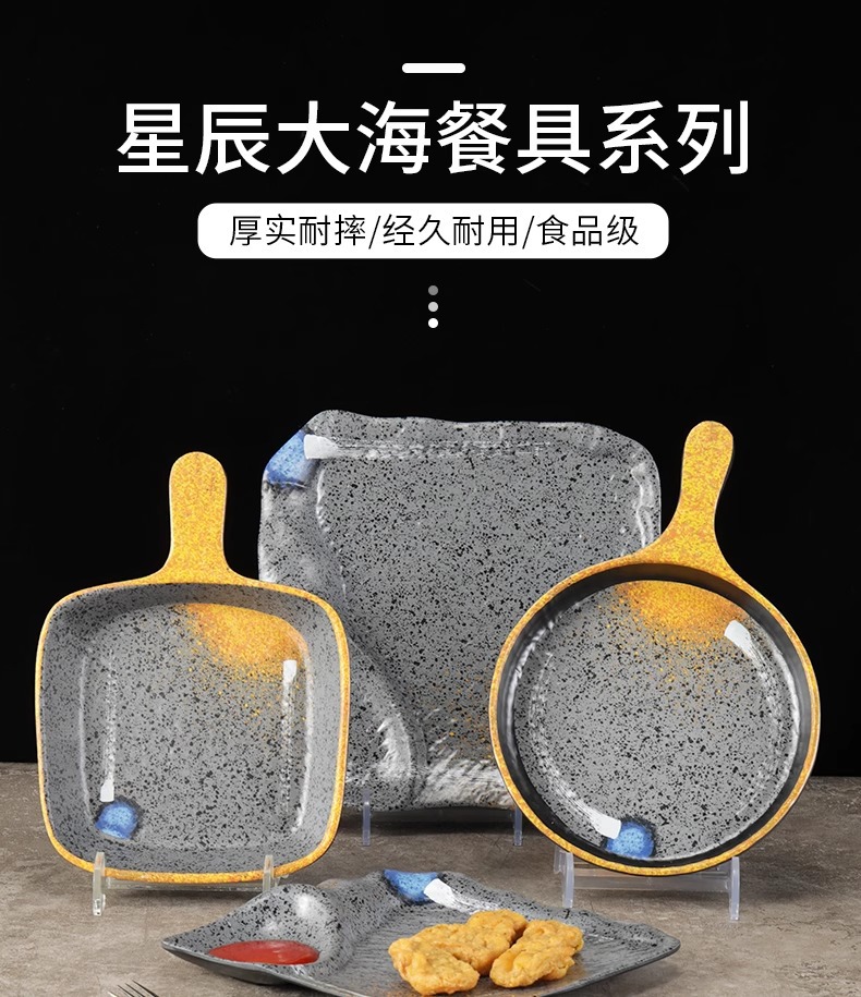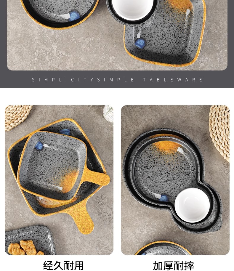 밀라민 크리에이티브 팬 인터넷 연예인 식사 및 파종 식기 휴대용 접시 손잡이가있는 바베큐 접시 상업용스토어 가기