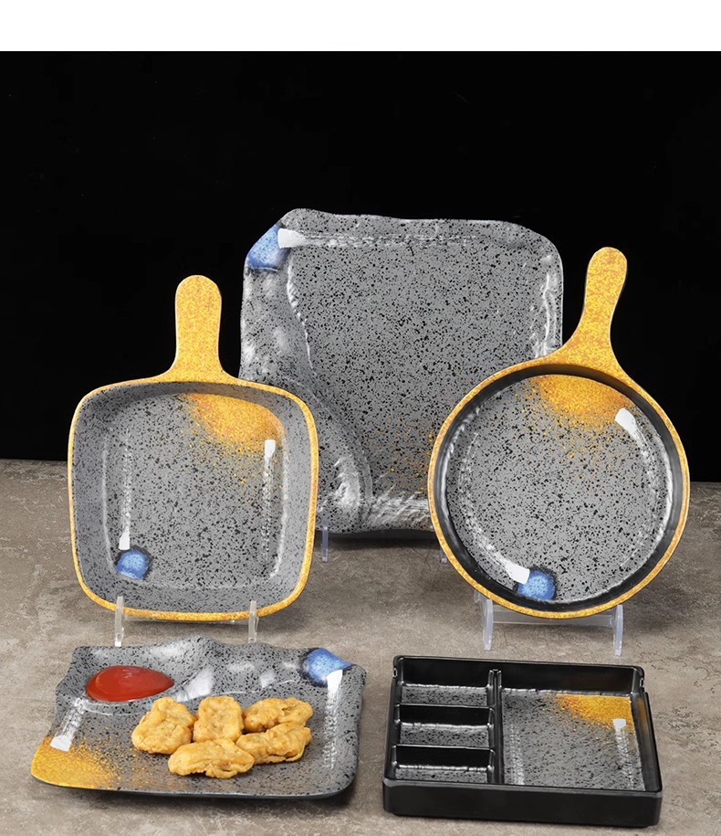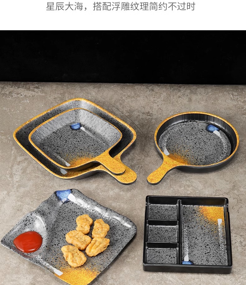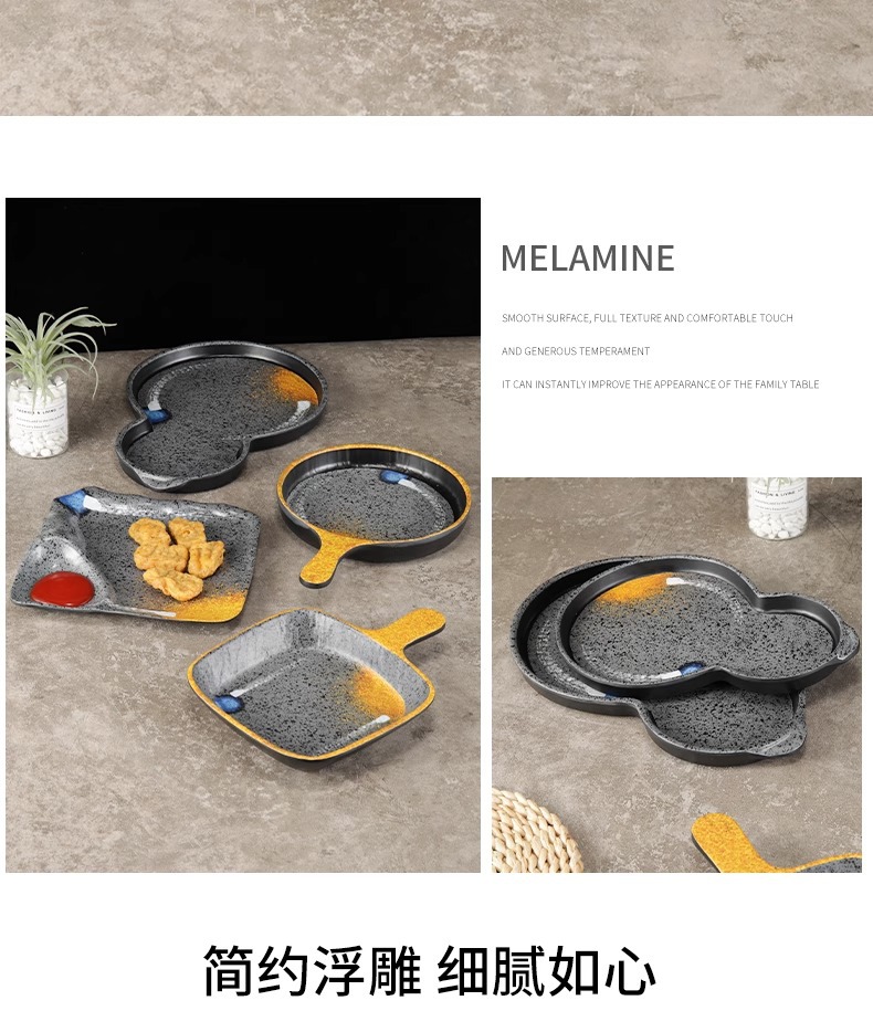 밀라민 크리에이티브 팬 인터넷 연예인 식사 및 파종 식기 휴대용 접시 손잡이가있는 바베큐 접시 상업용
