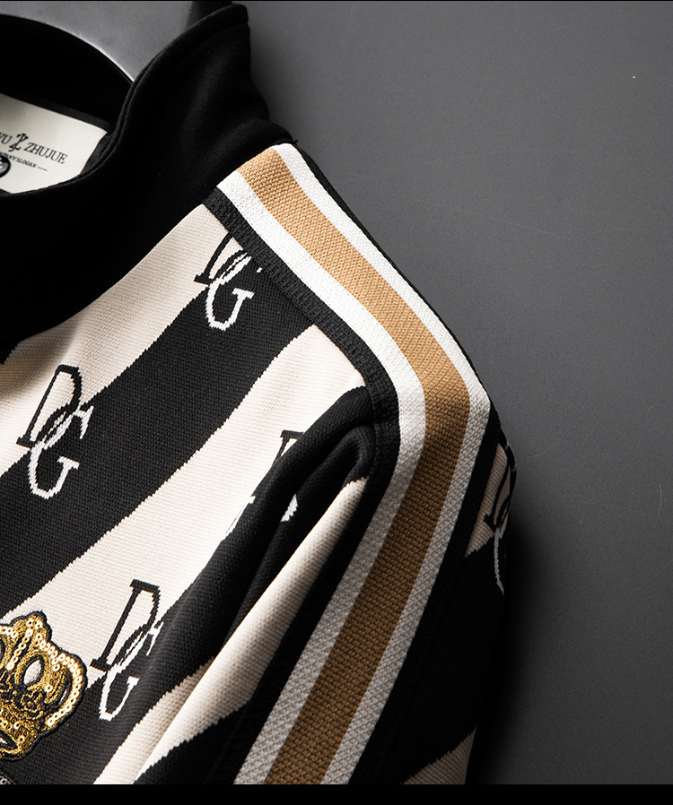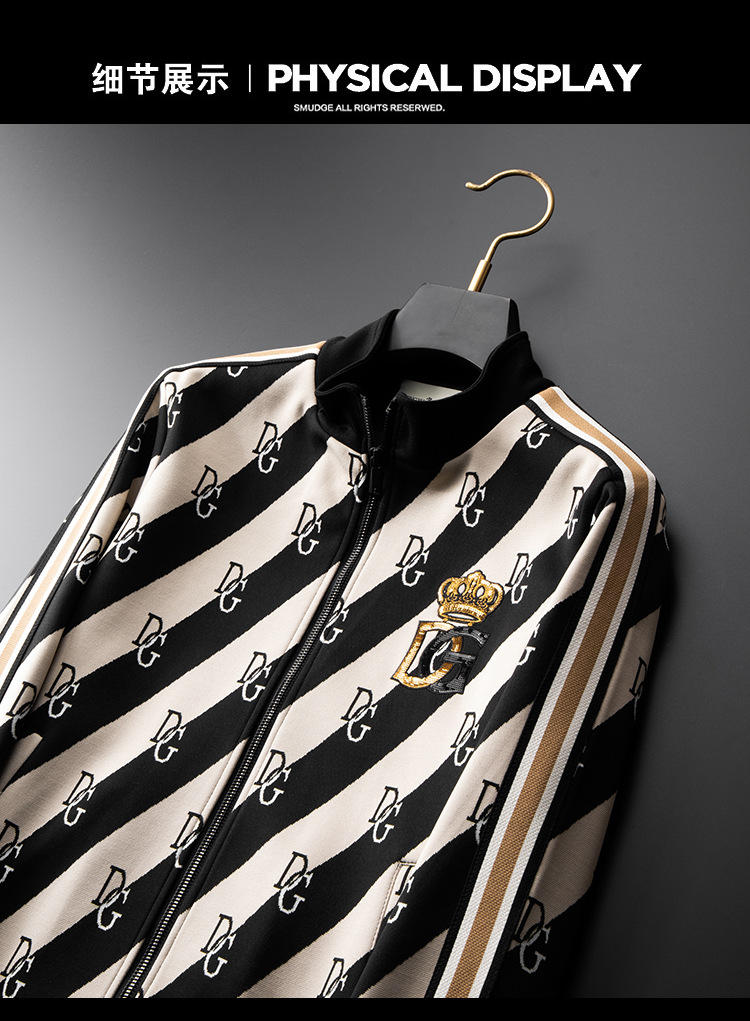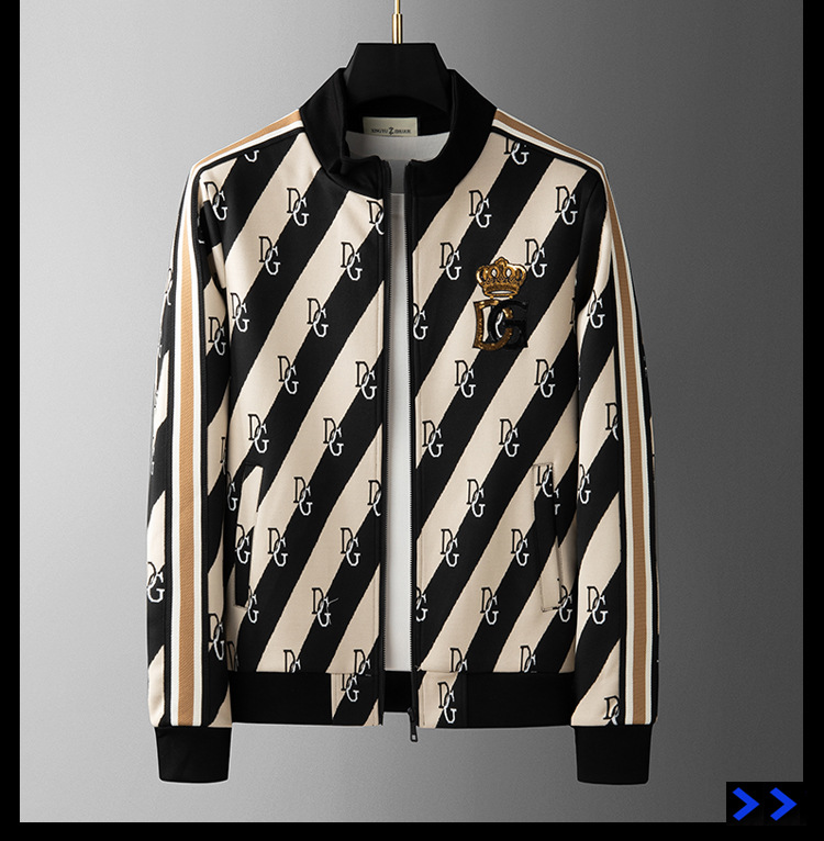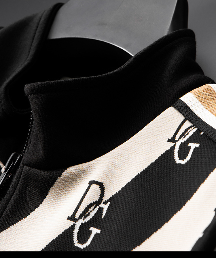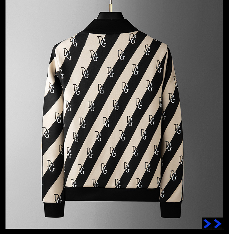 유럽 역 엔트리 럭셔리 남자의 2023 가을 새로운 스트라이프 자카드 재킷 남자의 한국 유행 가디건 스탠드 칼라 스웨터스토어 가기