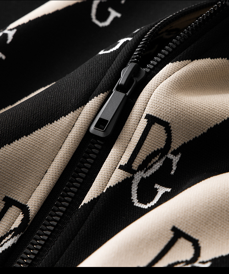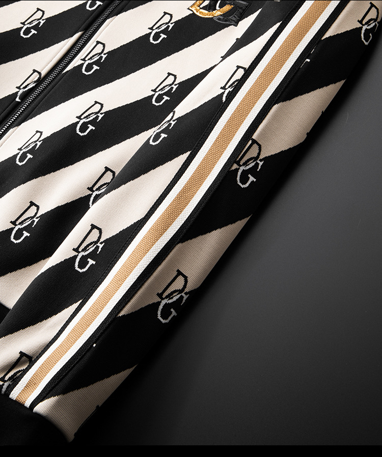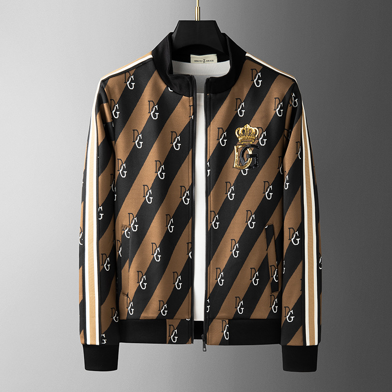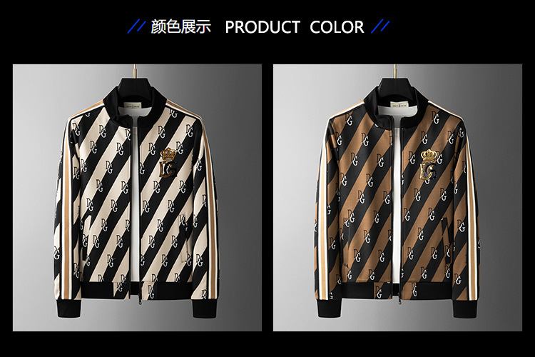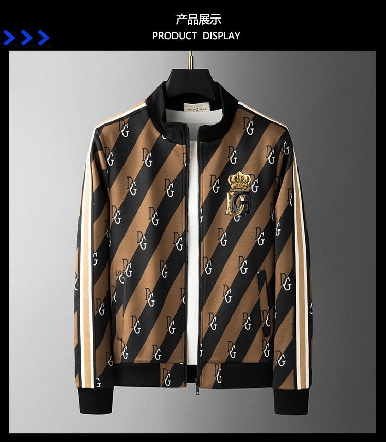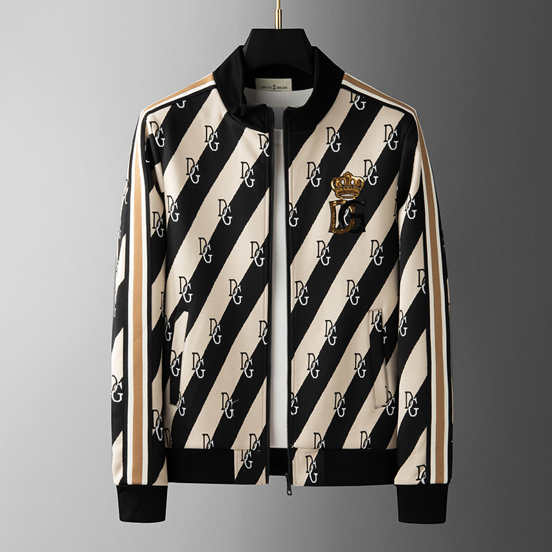 유럽 역 엔트리 럭셔리 남자의 2023 가을 새로운 스트라이프 자카드 재킷 남자의 한국 유행 가디건 스탠드 칼라 스웨터스토어 가기