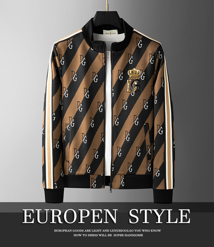 유럽 역 엔트리 럭셔리 남자의 2023 가을 새로운 스트라이프 자카드 재킷 남자의 한국 유행 가디건 스탠드 칼라 스웨터