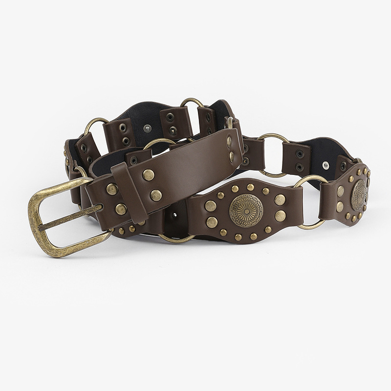 레트로 아메리칸 스타일의 핫걸스용 리벳 장식과 스티치가 돋보이는 와이드 벨트, 개성 넘치는 트렌디 펑크 메탈 버클 허리띠, 다용도스토어 가기