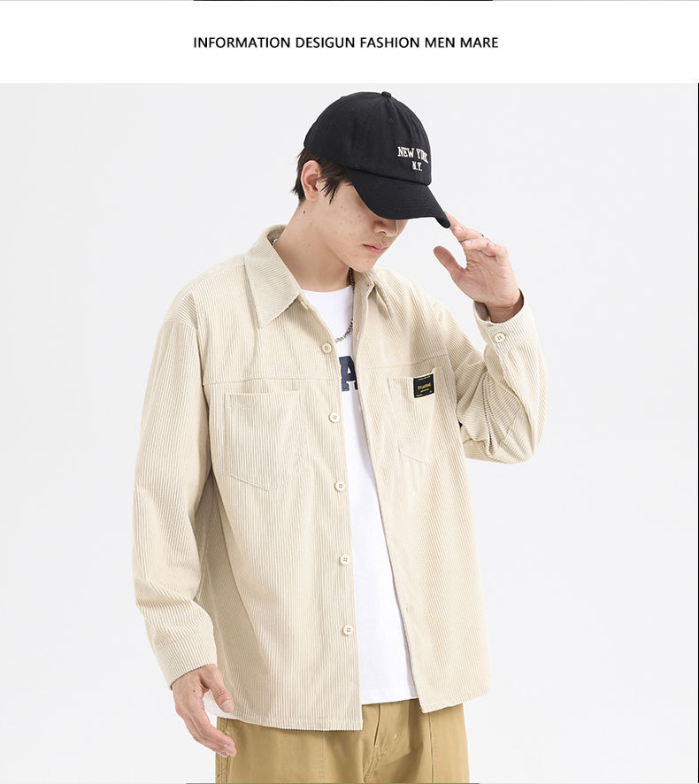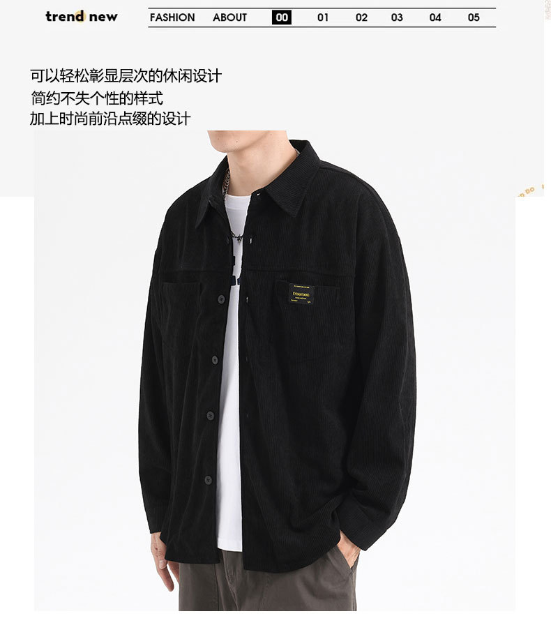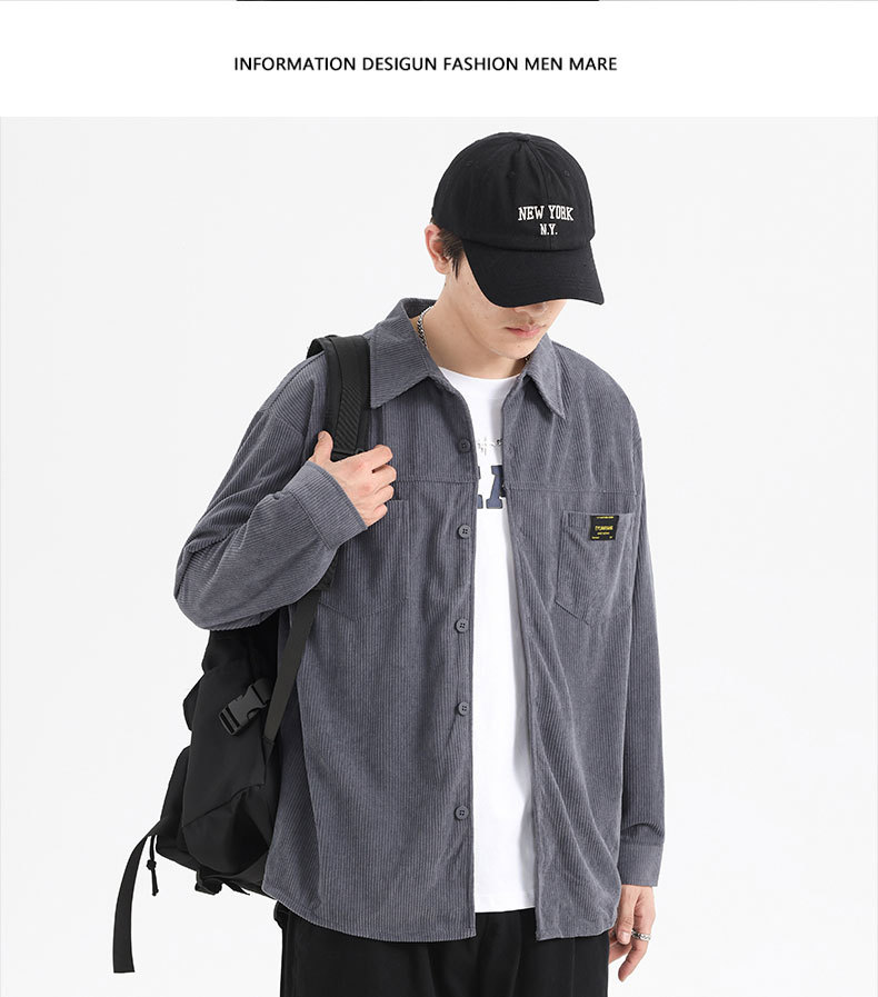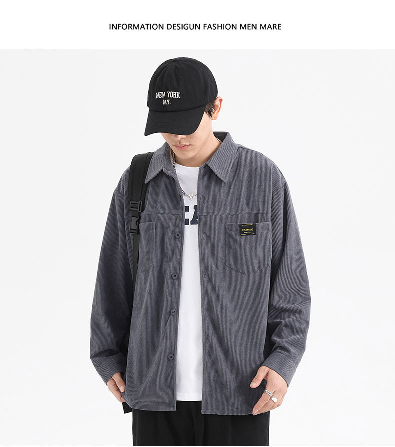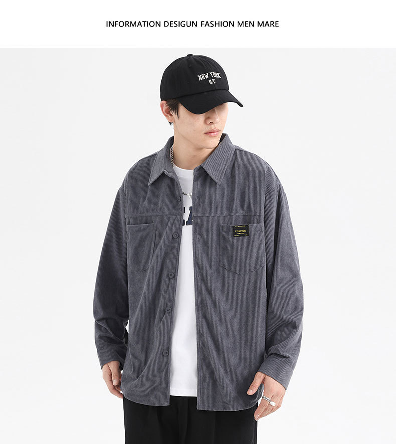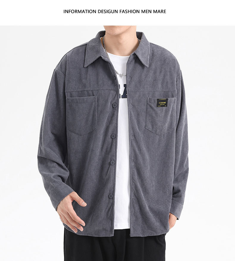 가을 새 남자의 코듀로이 긴 소매 셔츠 홍콩 스타일 단색 느슨한 캐주얼 트렌디 셔츠 재킷