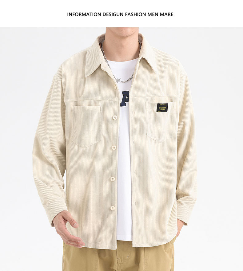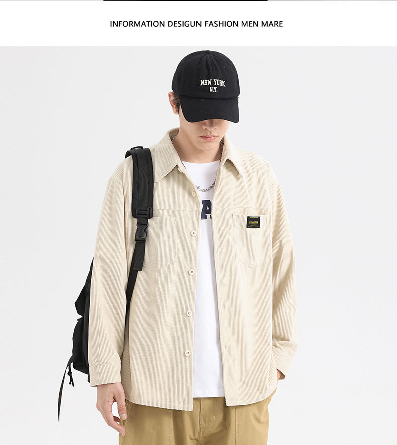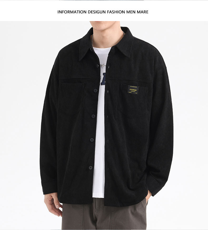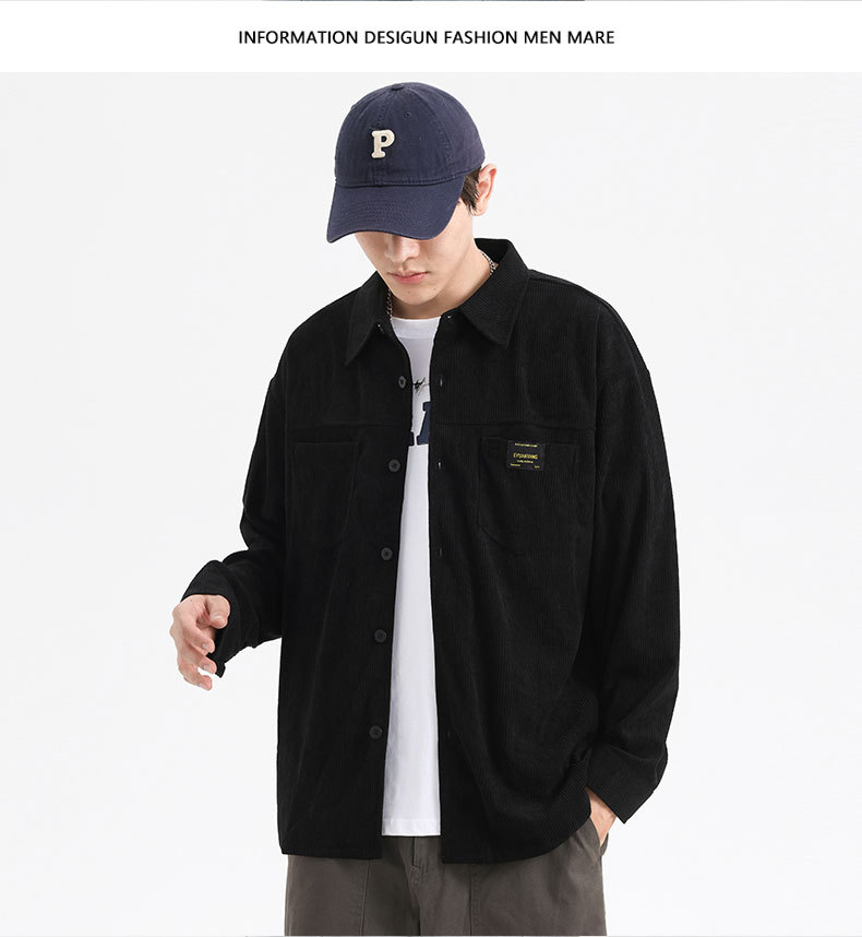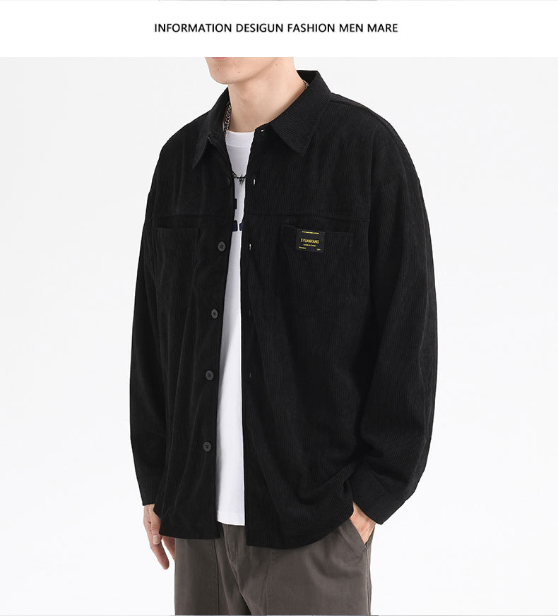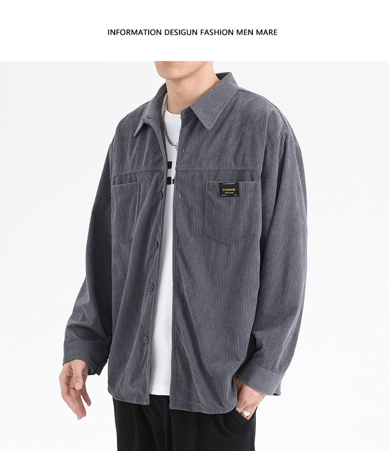 가을 새 남자의 코듀로이 긴 소매 셔츠 홍콩 스타일 단색 느슨한 캐주얼 트렌디 셔츠 재킷