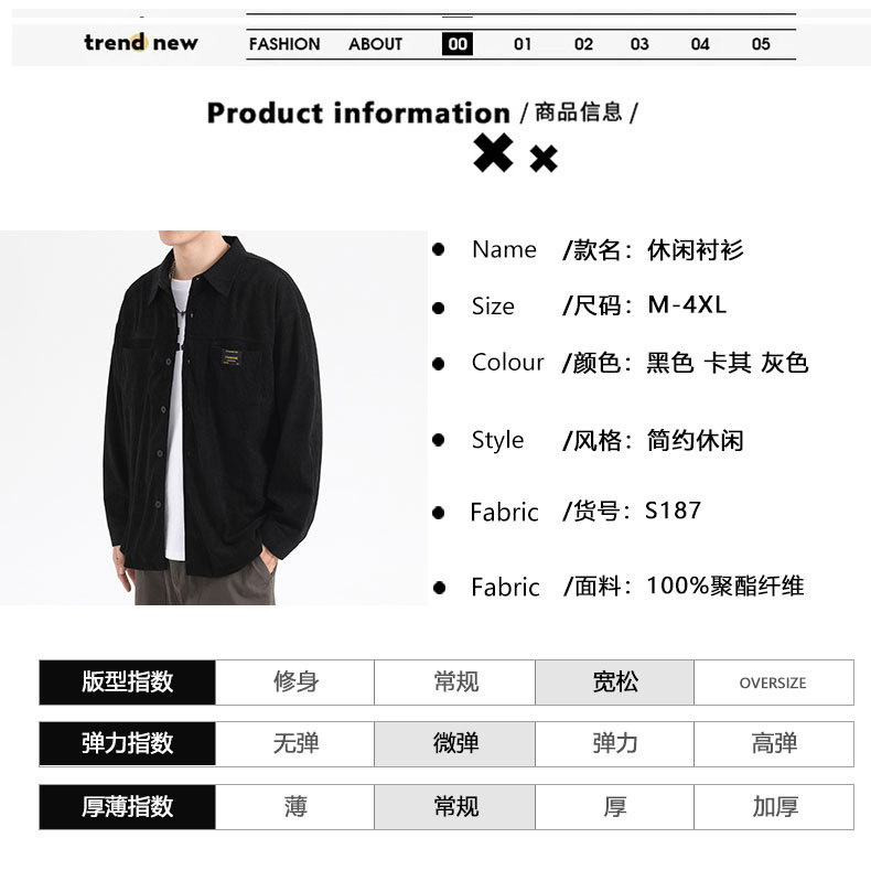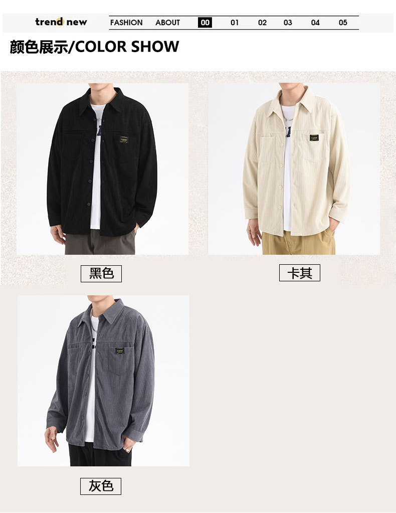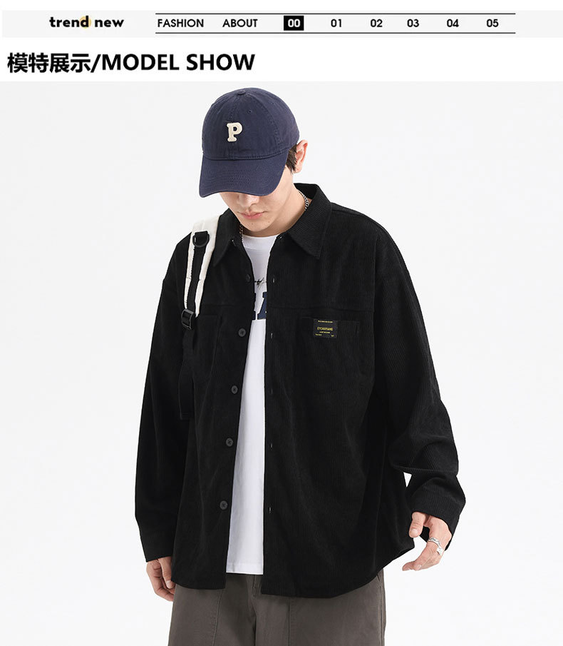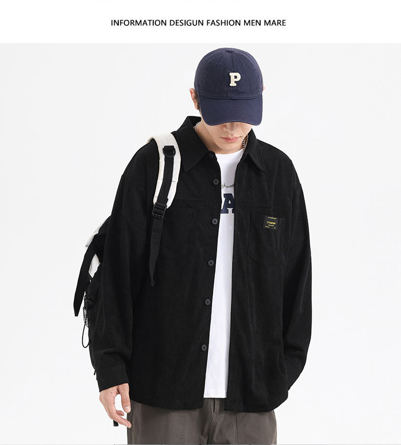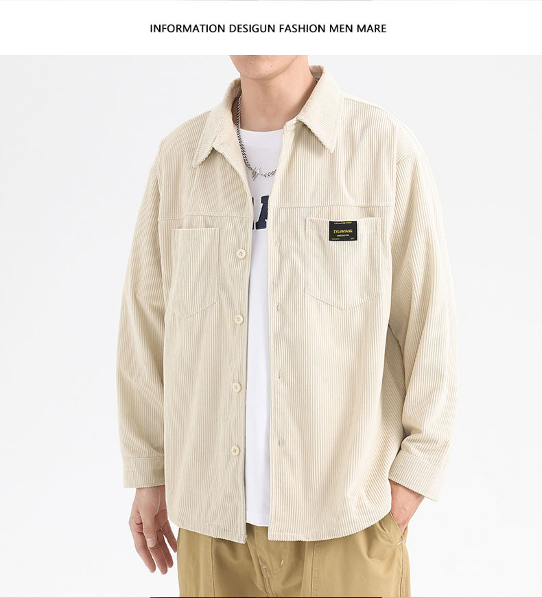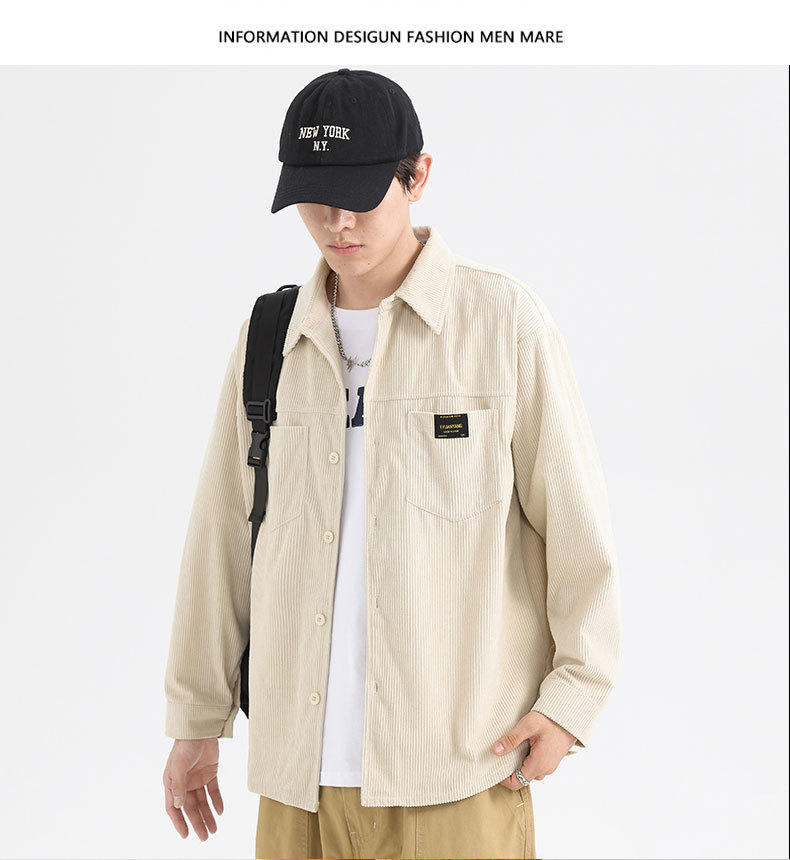 가을 새 남자의 코듀로이 긴 소매 셔츠 홍콩 스타일 단색 느슨한 캐주얼 트렌디 셔츠 재킷스토어 가기