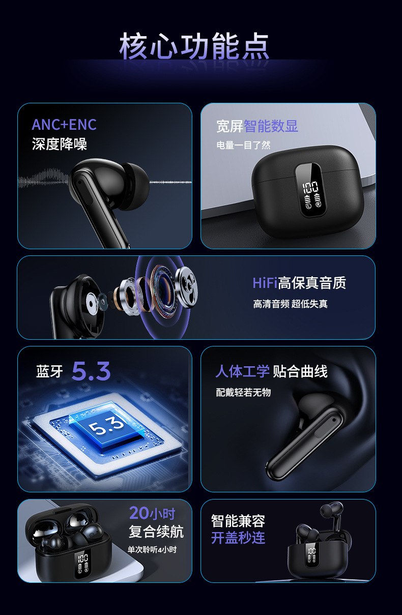 새로운 블랙 기술 Huaqiangbei 인 이어 무선 블루투스 헤드셋 스테레오 듀얼 채널 TWS 디지털 디스플레이 블루투스 헤드셋스토어 가기