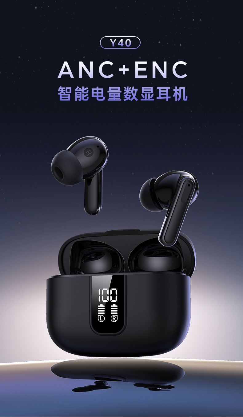 • 블랙 y40 anc + enc 노이즈 감소