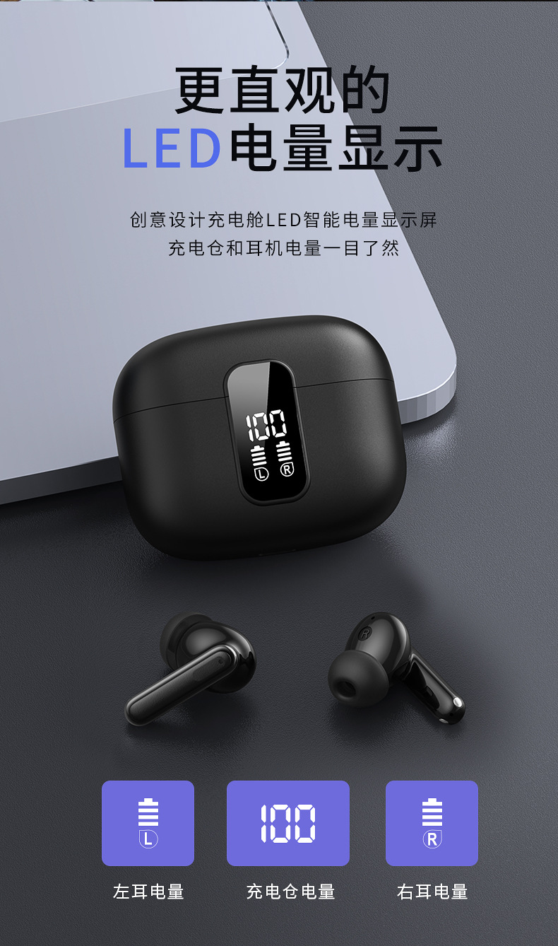 새로운 블랙 기술 Huaqiangbei 인 이어 무선 블루투스 헤드셋 스테레오 듀얼 채널 TWS 디지털 디스플레이 블루투스 헤드셋