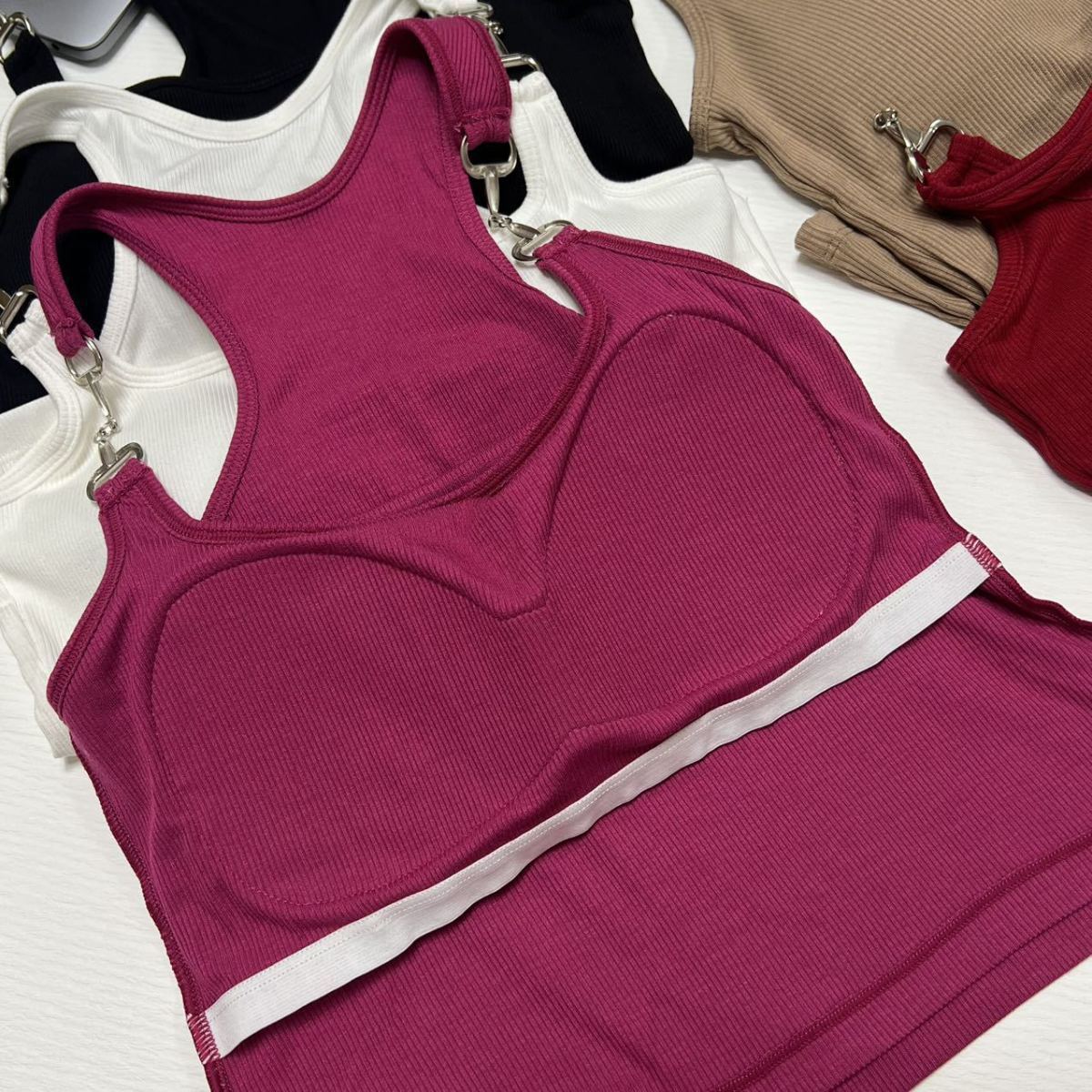 중공 조끼 뜨거운 소녀 아니 스틸 링 튜브 탑 슬링베이스 순수한 욕망 여성을위한 가슴 패드가있는 섹시한 아름다운 민소매 백 탑
