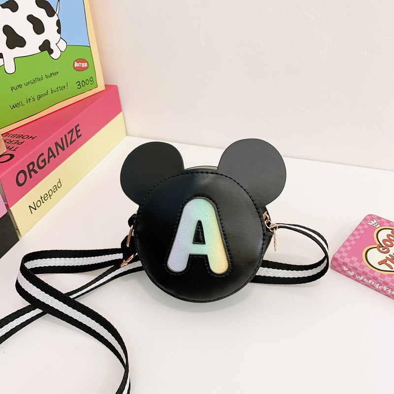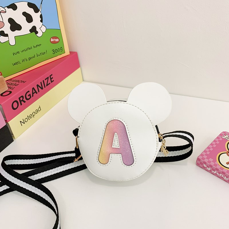 귀여운 가방 크로스 바디 동전 지갑 한국식 패션 공주 와이드 숄더 스트랩 작은 라운드 백 미키 마우스 인쇄 작은 사첼