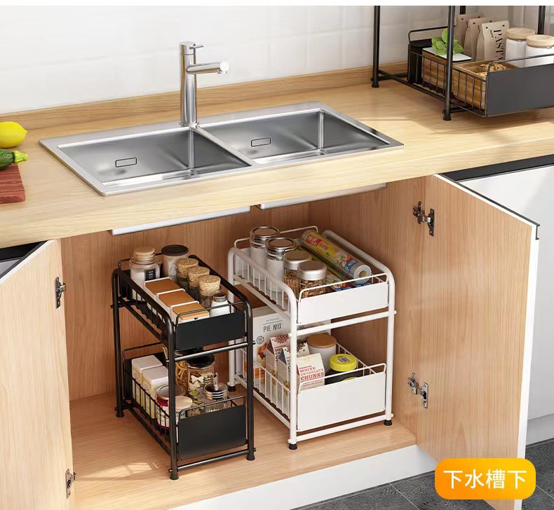 가정용 조리대 슬라이드식 양념통 정리함, 주방 싱크대 수납 바구니, 캐비닛 내 수납함, 욕실 수납 선반스토어 가기