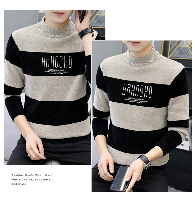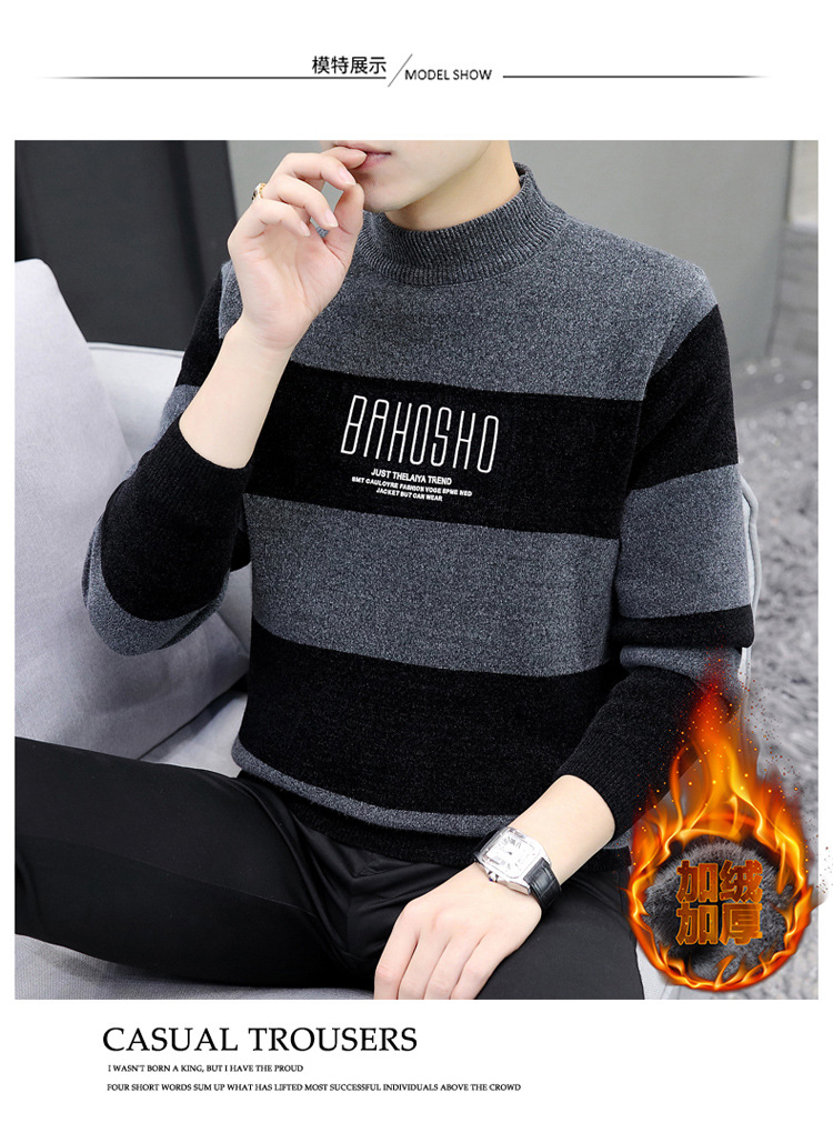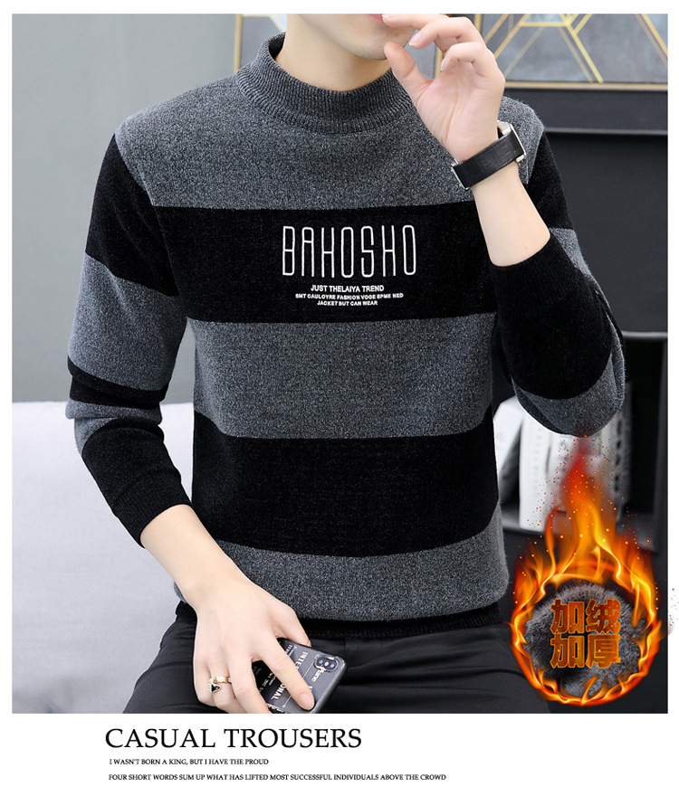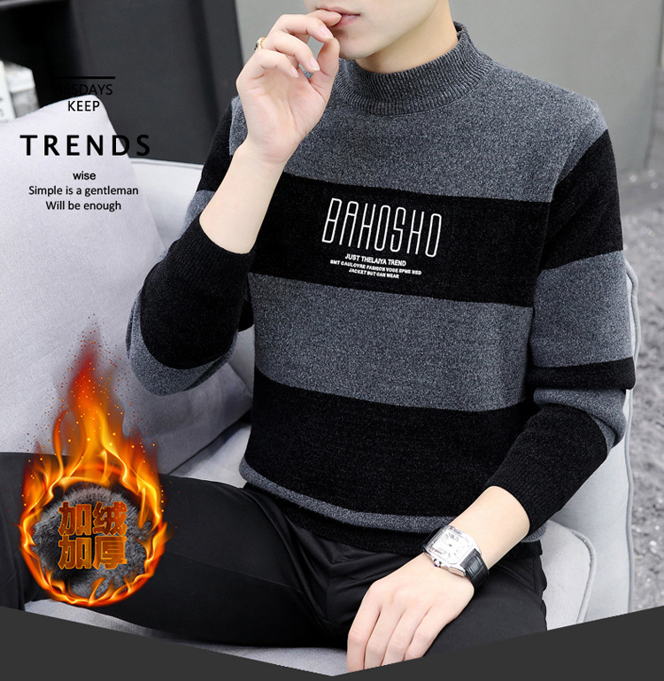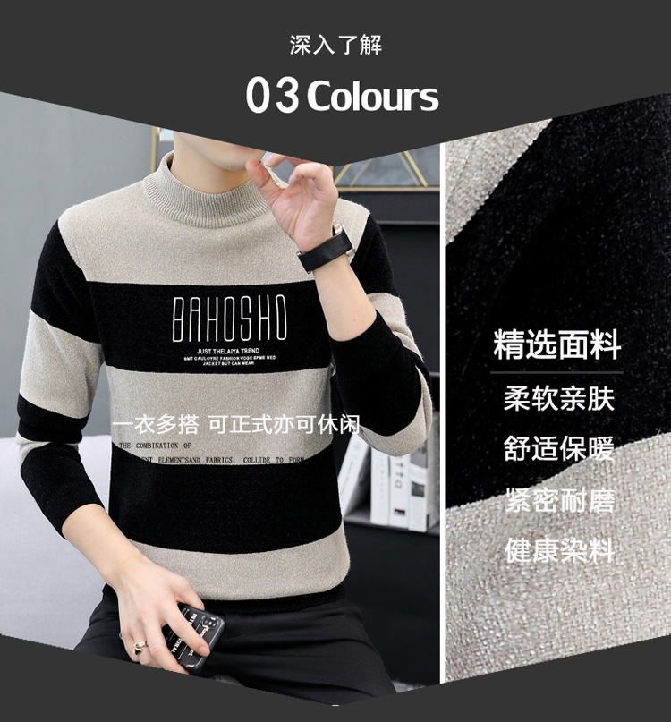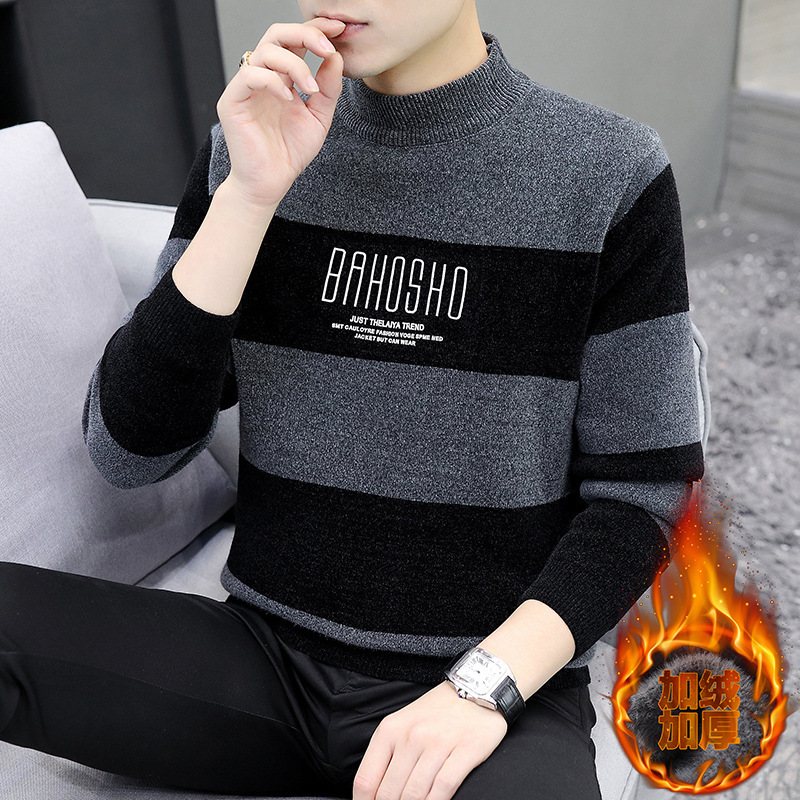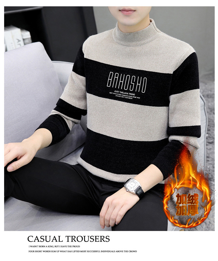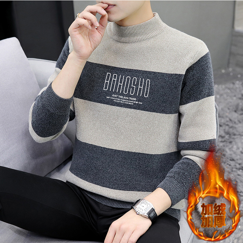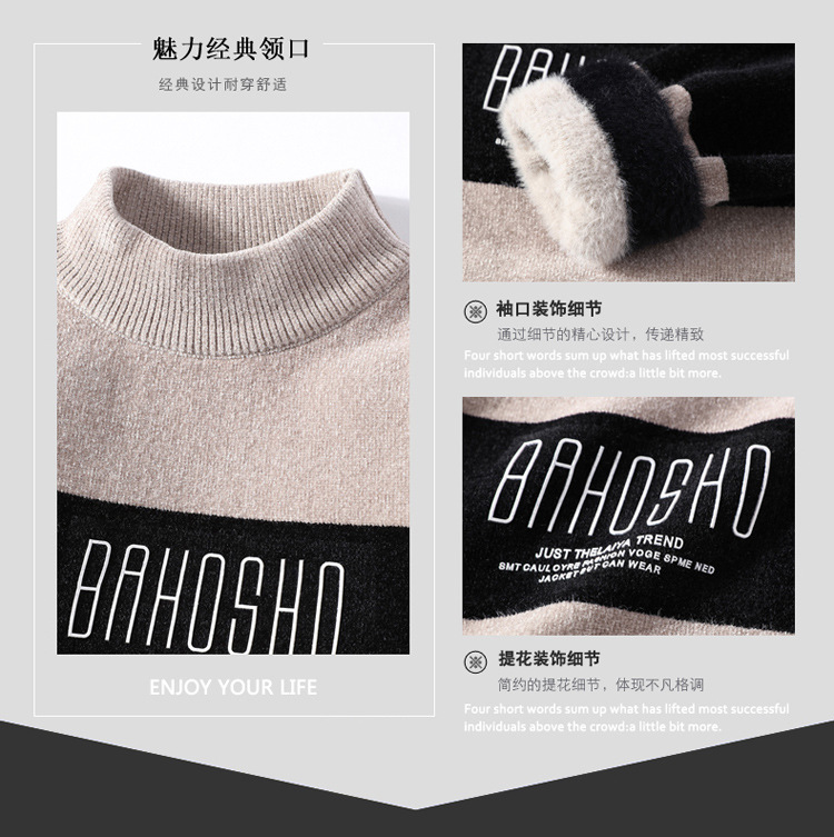 원피스 벨벳 세미 터틀넥 스웨터 남성용 가을과 겨울 바닥 셔츠 기모 두꺼운 캐시미어 스웨터 겨울 따뜻한 옷
