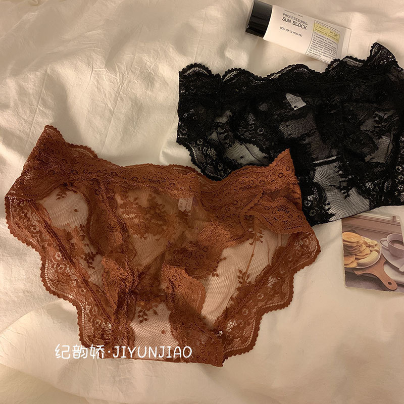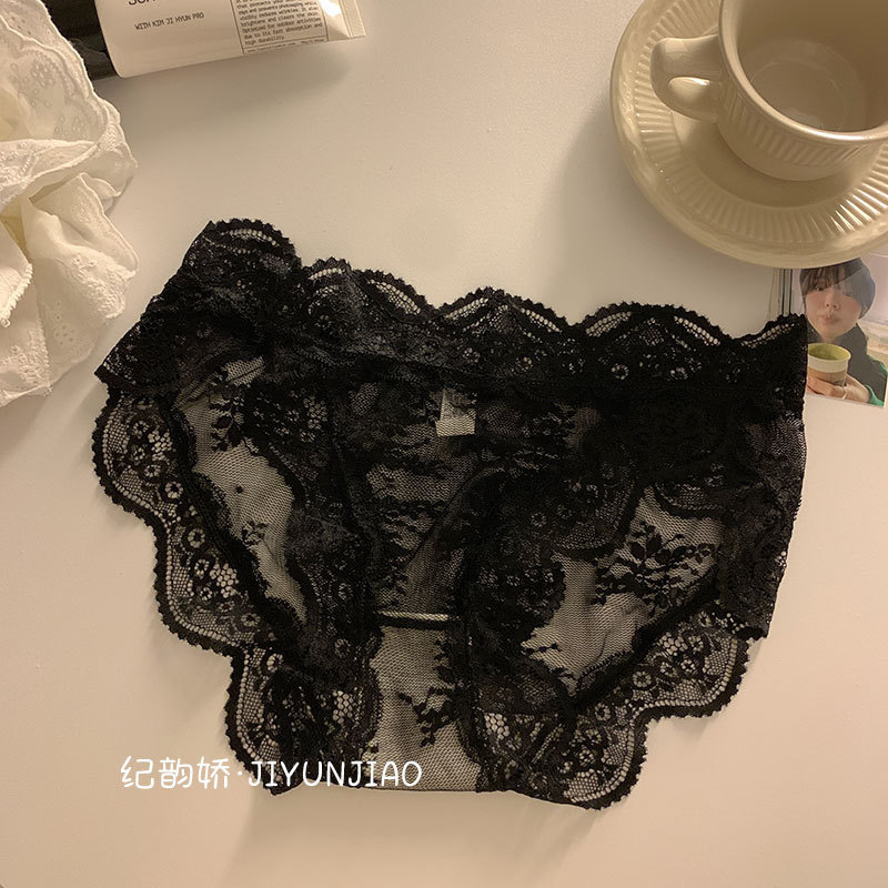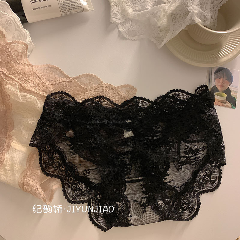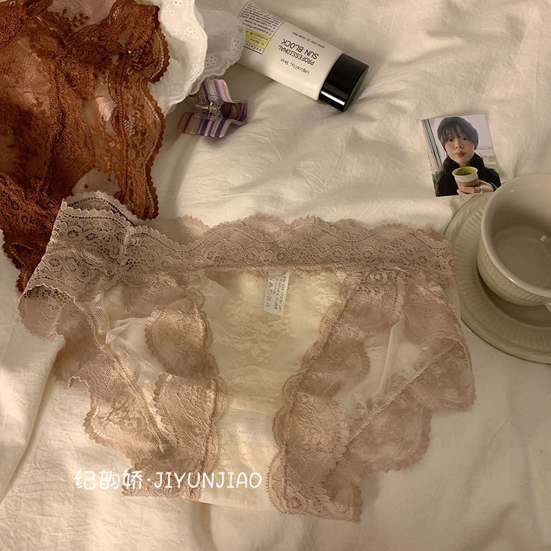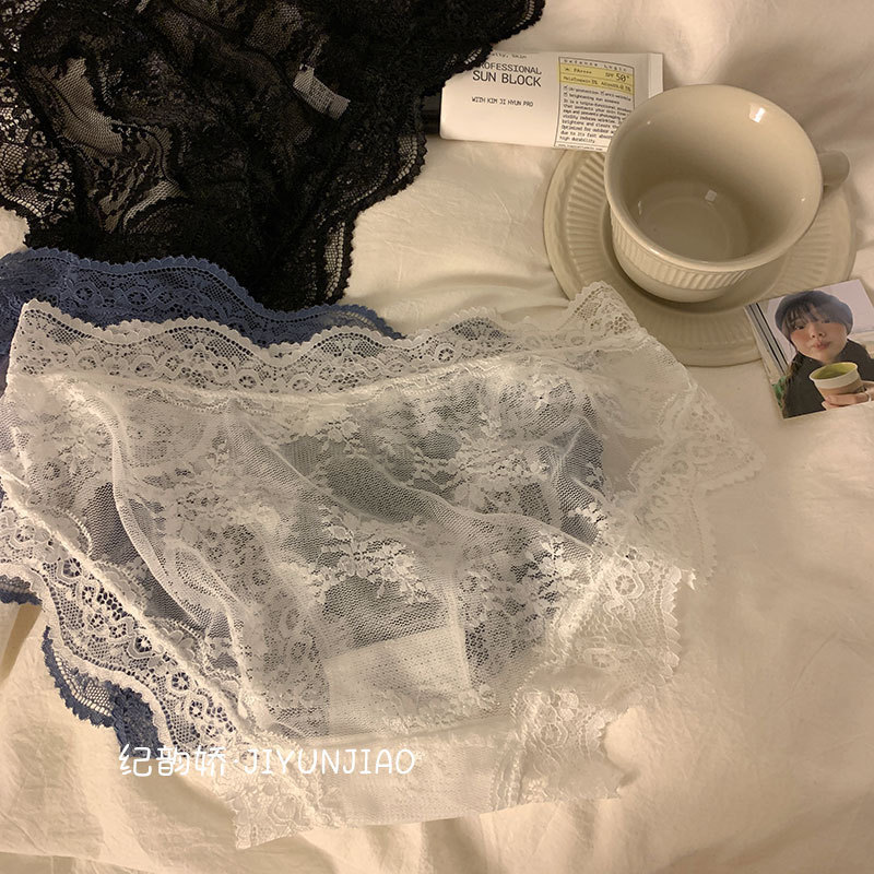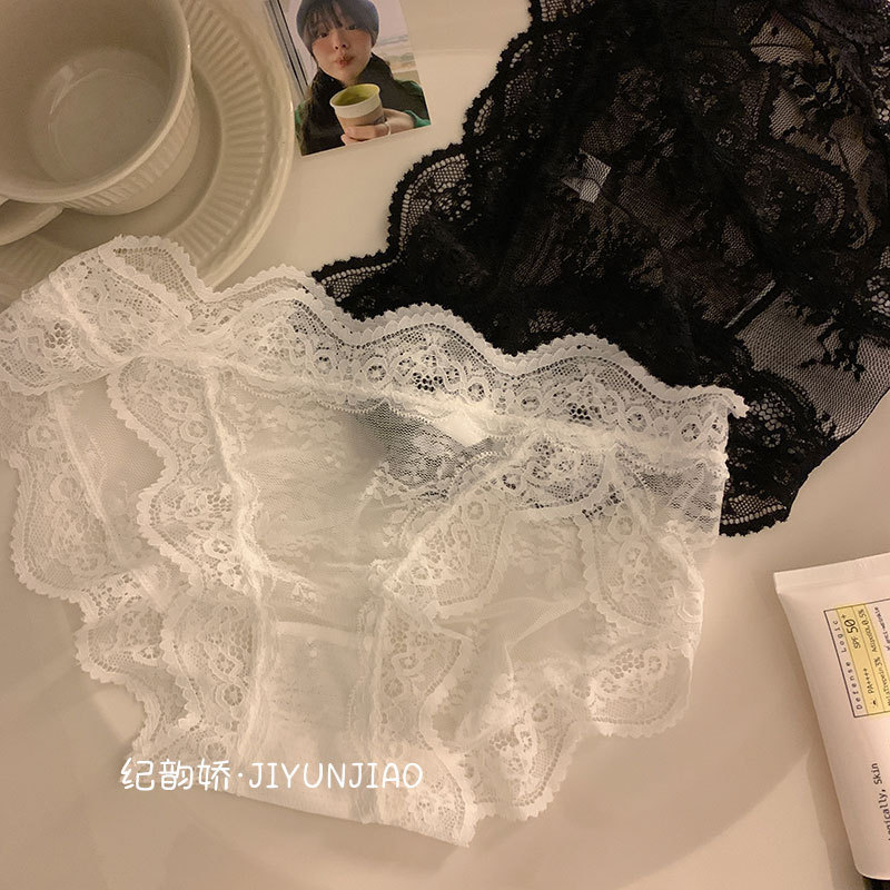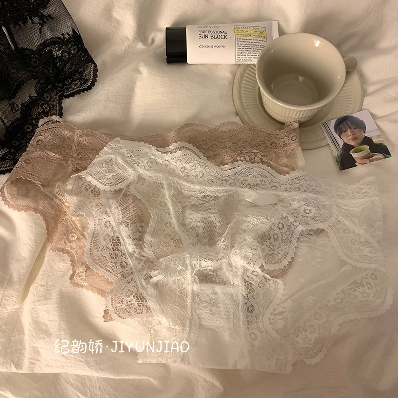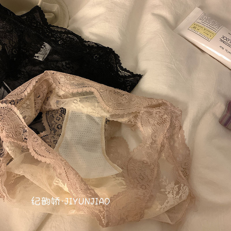 프랑스 스타일 섹시한 레이스 속옷 여성용 순면 가랑이 투명 달콤하고 순수한 뜨거운 소녀의 낮은 허리 팬티 여성용스토어 가기