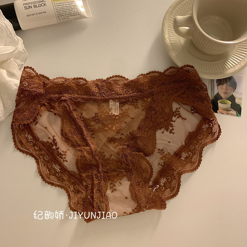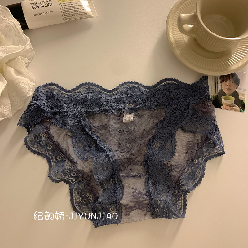 프랑스 스타일 섹시한 레이스 속옷 여성용 순면 가랑이 투명 달콤하고 순수한 뜨거운 소녀의 낮은 허리 팬티 여성용