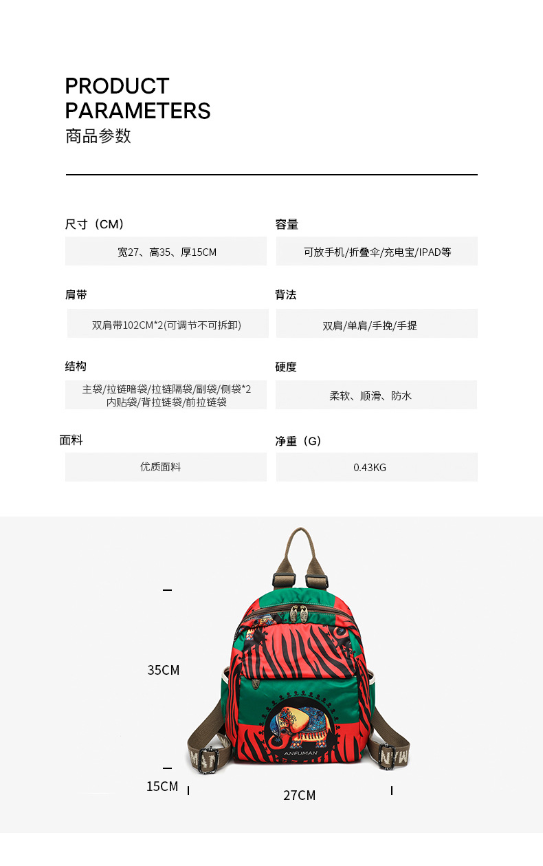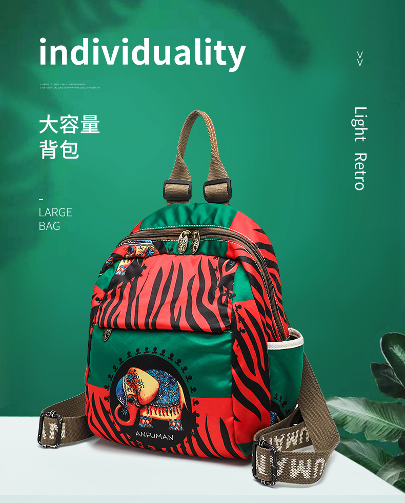 안푸만 프린트 여성 백팩, 민족풍 패셔너블하고 다용도로 활용 가능한 대용량 여행 및 레저 백팩, 제조사 직판
