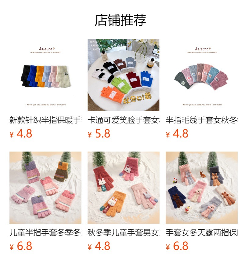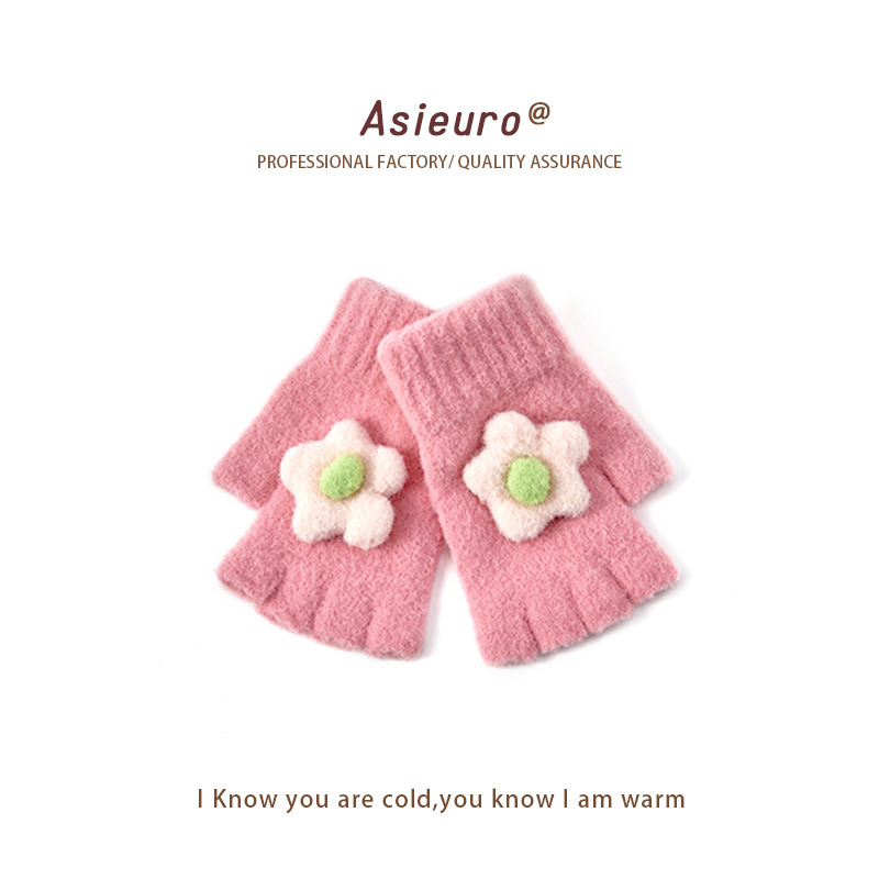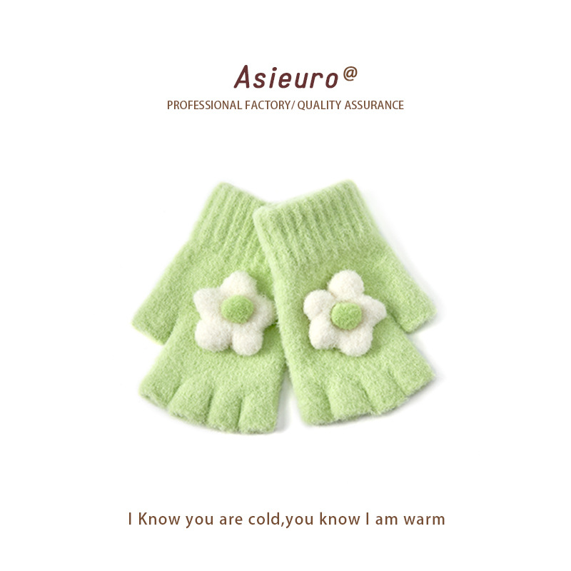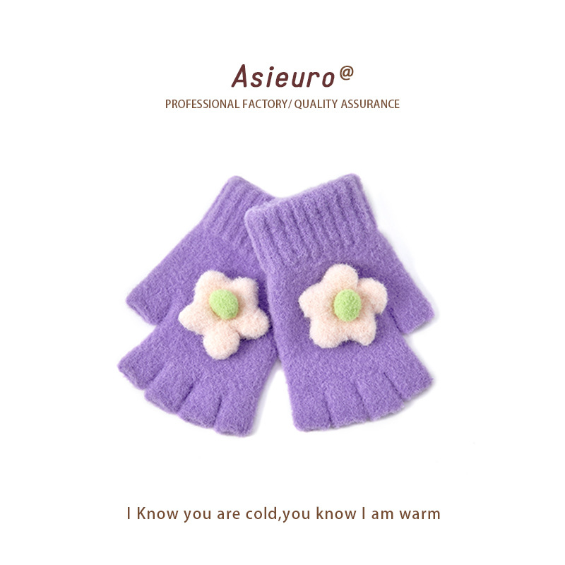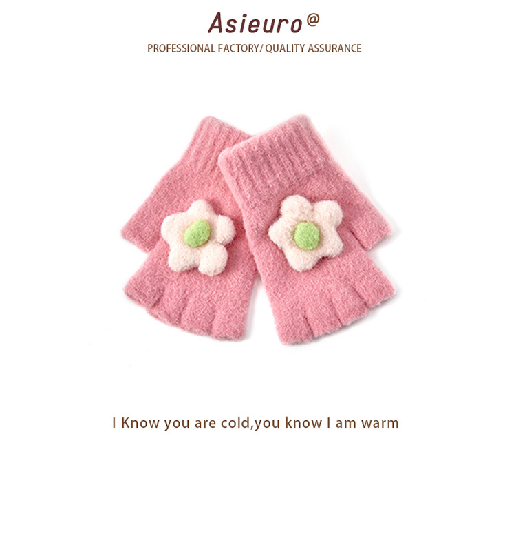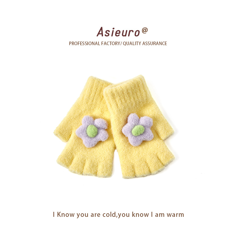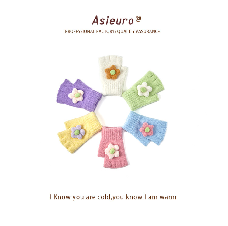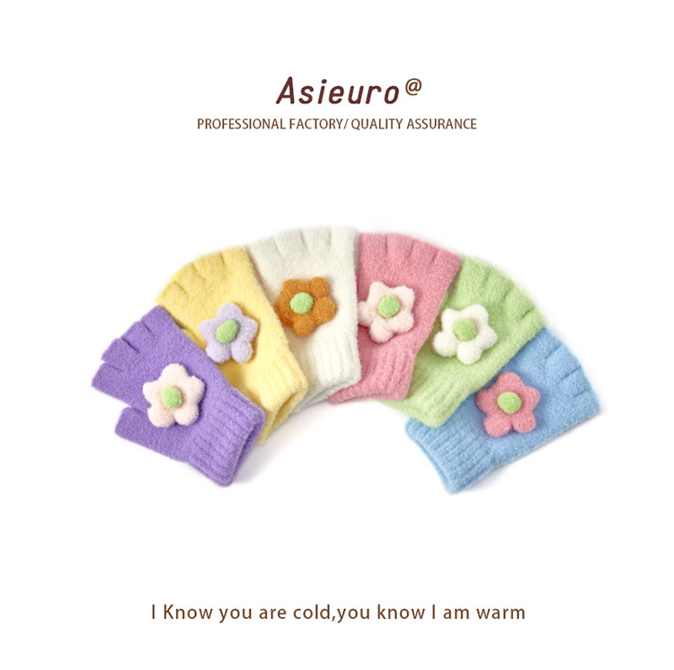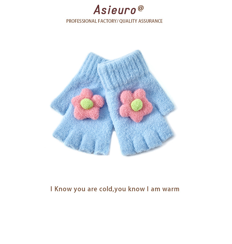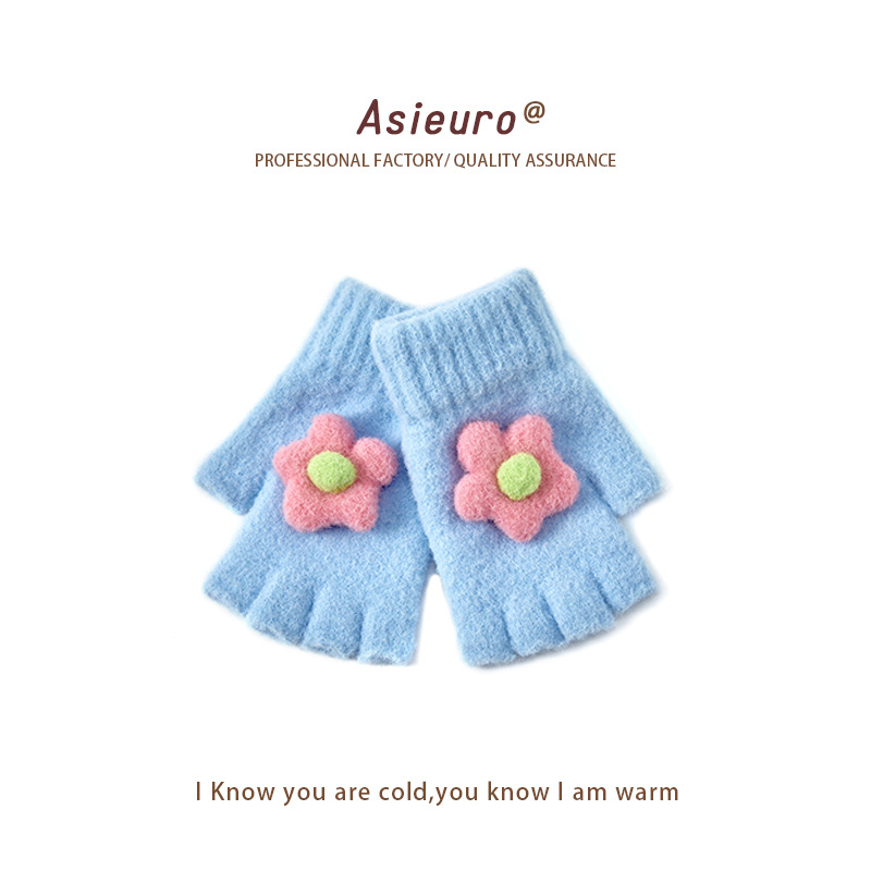 어린이용 겨울 장갑, 벨벳 안감으로 두껍게 제작, 여아용 따뜻한 니트 모직, 귀여운 손가락 분리형/오픈핑거형, 숙제용, 도매, 터치스크린 가능스토어 가기