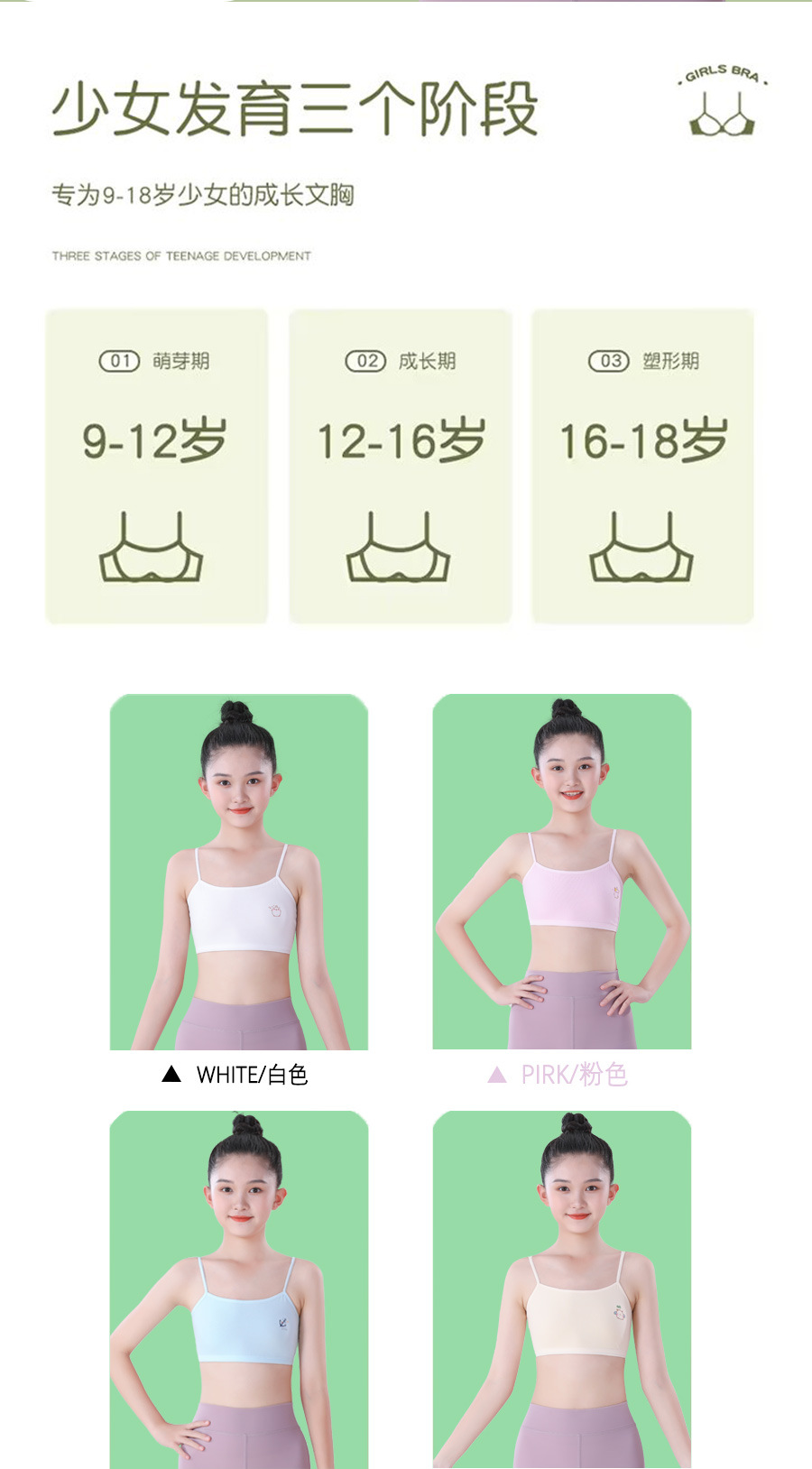 6-12 세 소녀의 작은 조끼 순면 소녀의 속옷 발달 기간 초등학생 8-12 세 소녀의 속옷스토어 가기