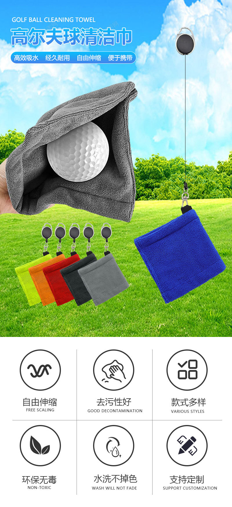 크로스 보더 뉴 골프 클리닝 타올 극세사 벨벳 야외 편리한 교수형 허리 스포츠 와이핑 클럽 천스토어 가기