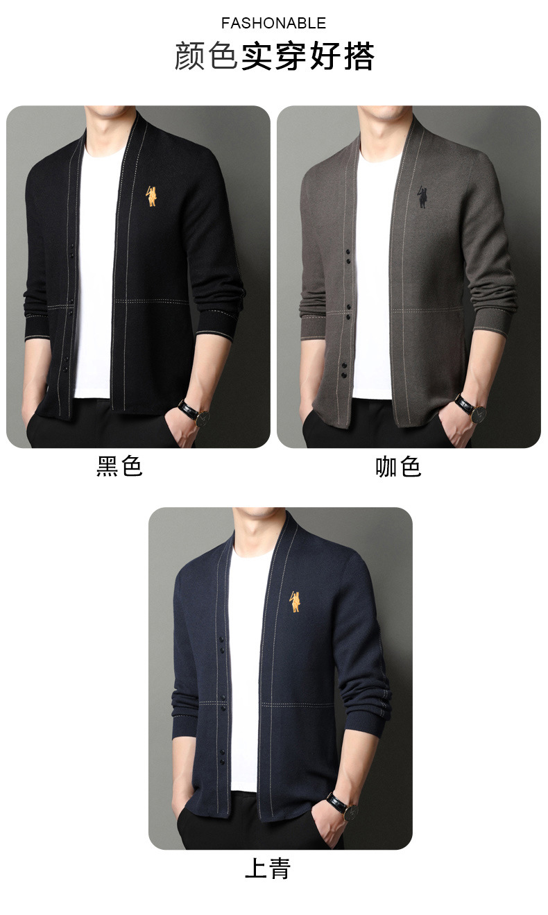 [라렌 폴] 남성 울 가디건 봄과 가을 새 니트웨어 재킷 캐주얼 트렌드 아우터